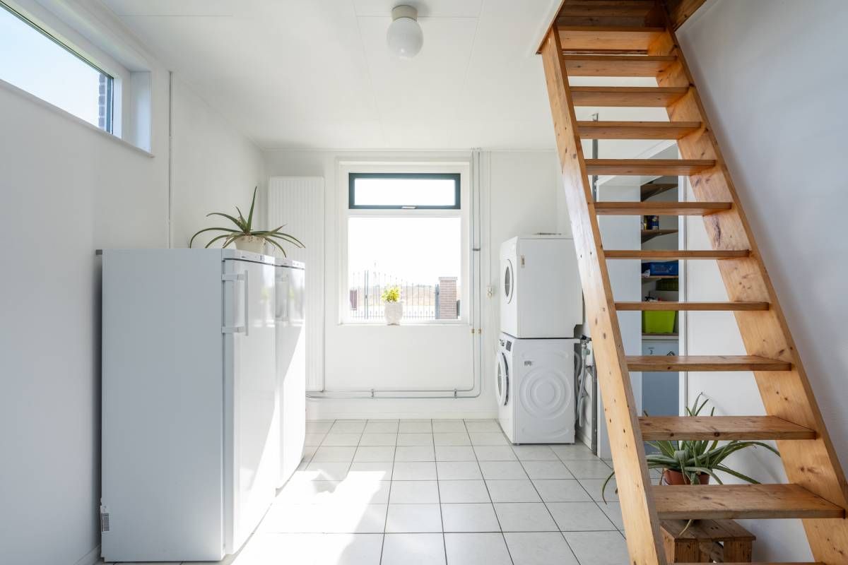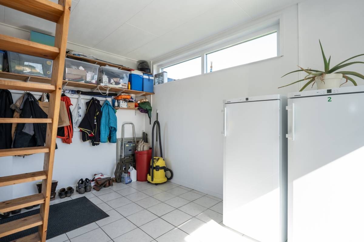 De bijkeuken biedt ruimte voor wasmachine, droger en extra koel-/vriesapparatuur.