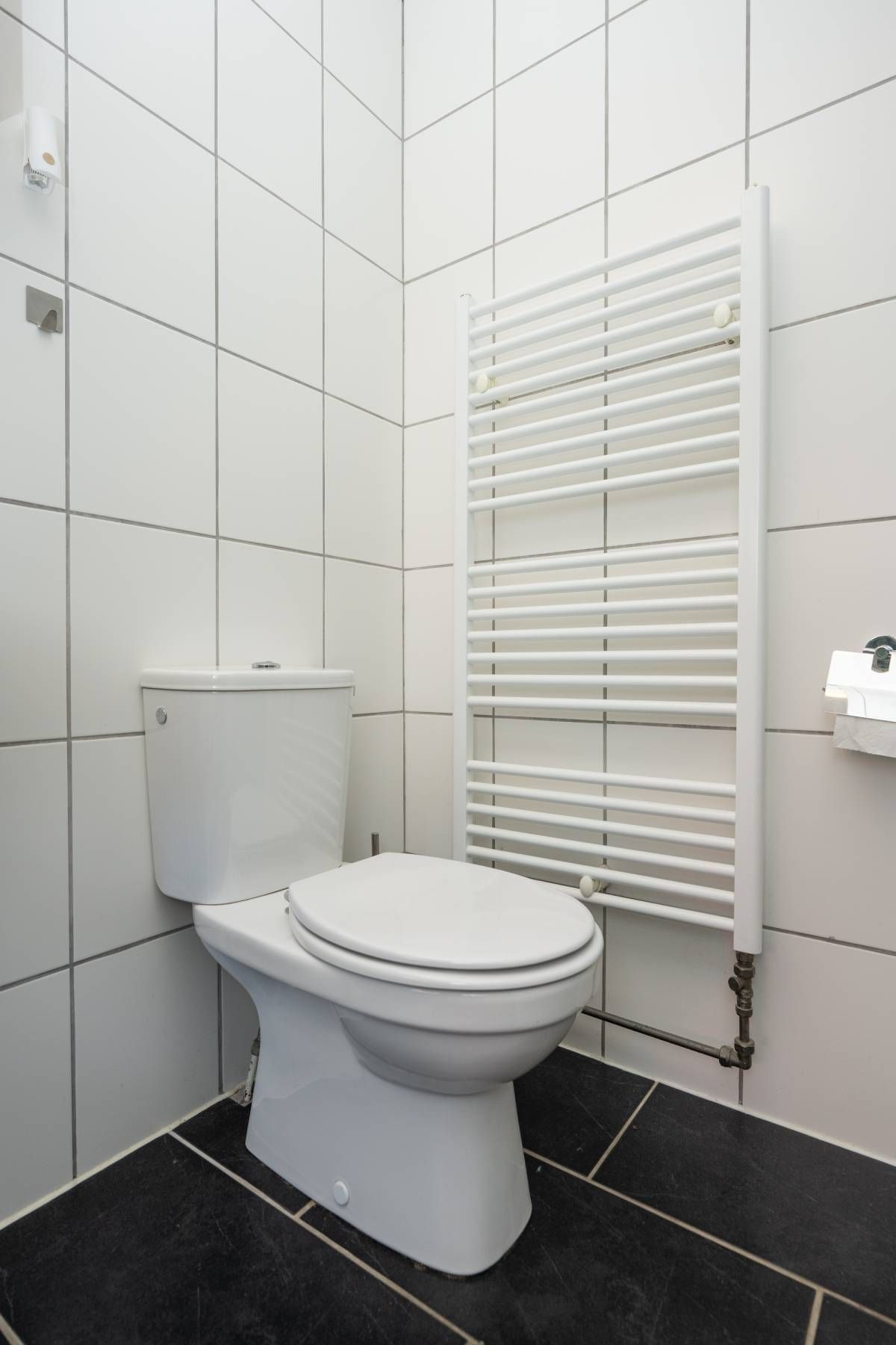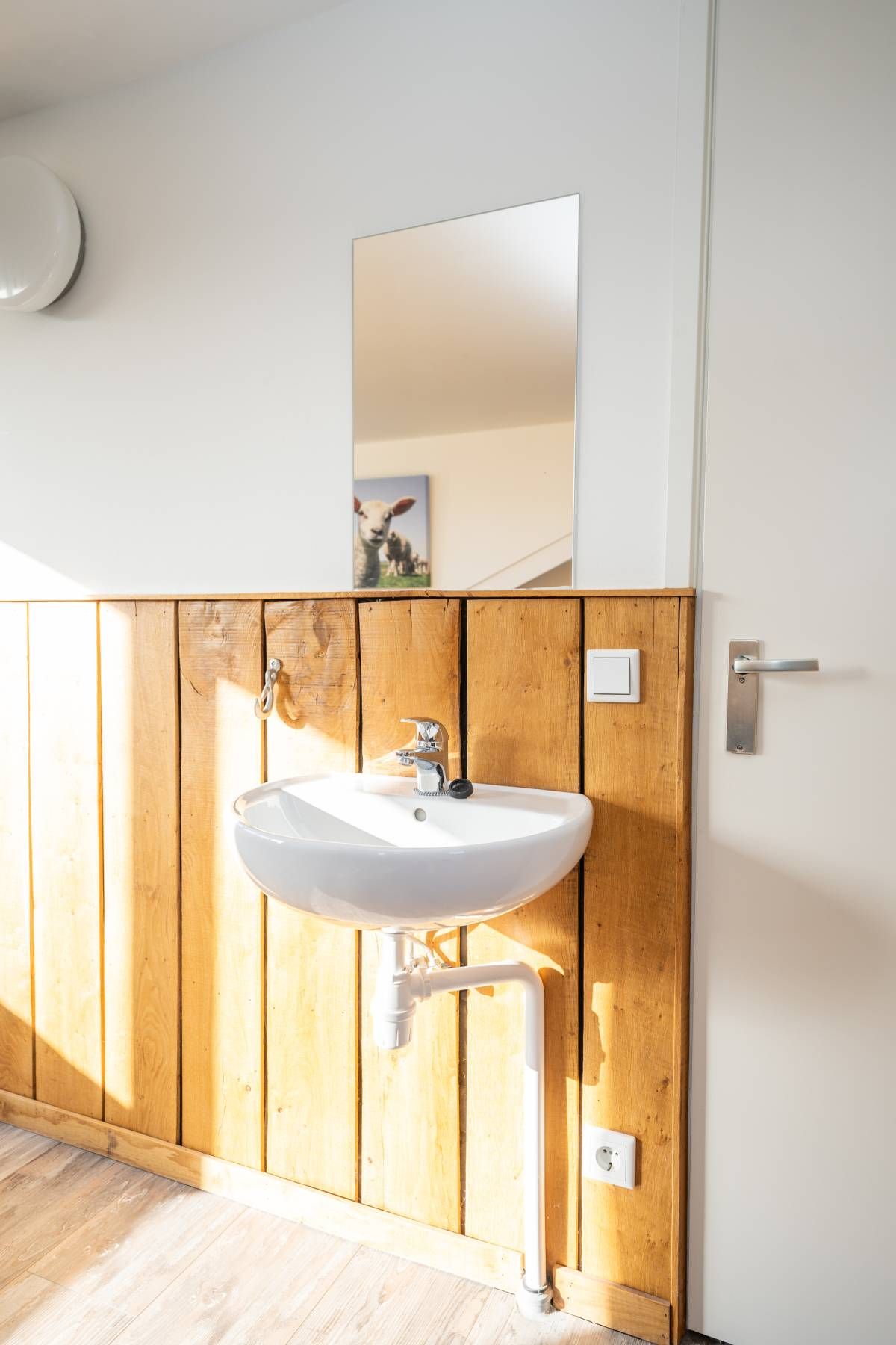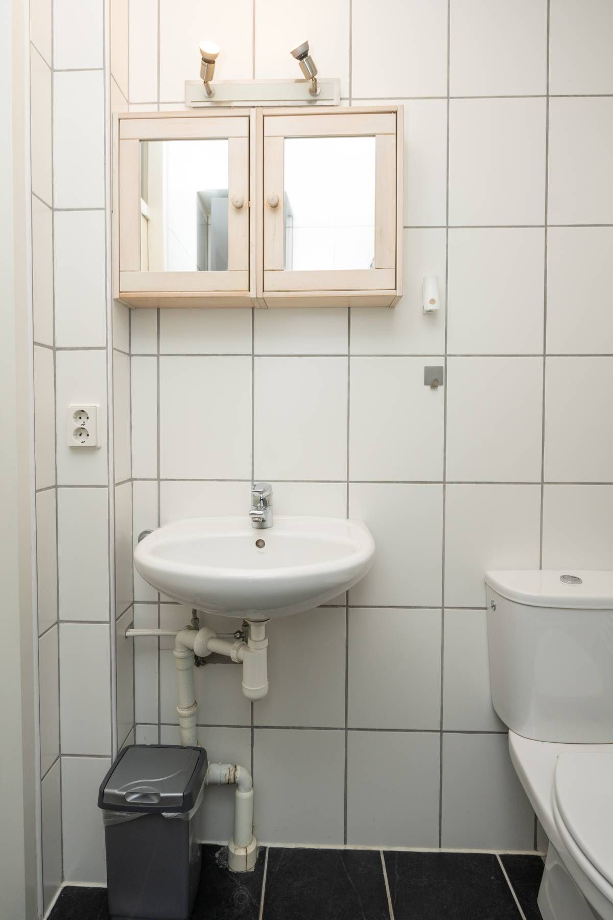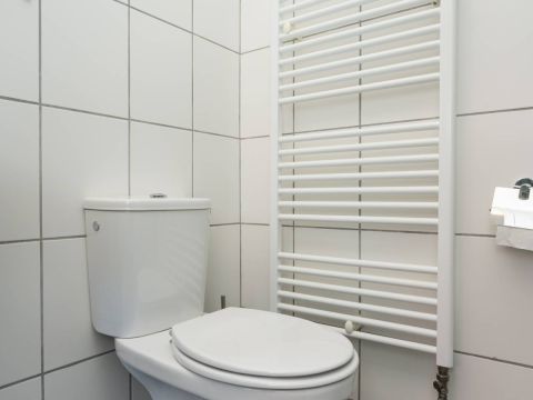 De badkamer is voorzien van een douche, wastafel en toilet. Praktisch en verzorgd.