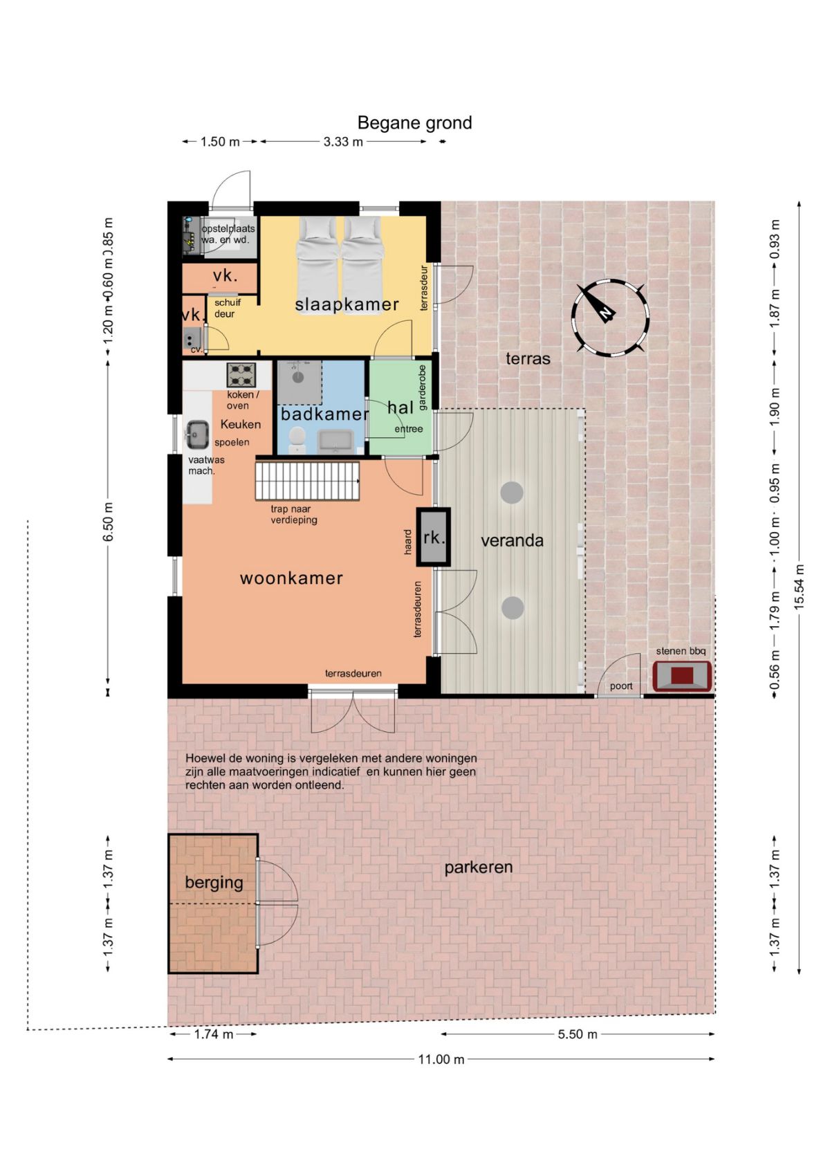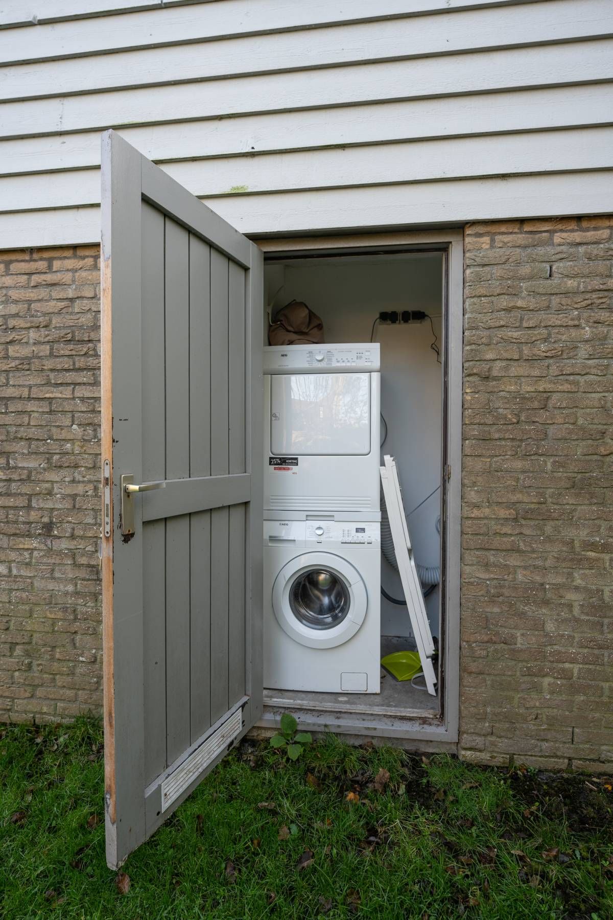 Vanuit de tuin in de berging bereikbaar waar zich de opstelplaats bevindt voor de wasmachine en droger.