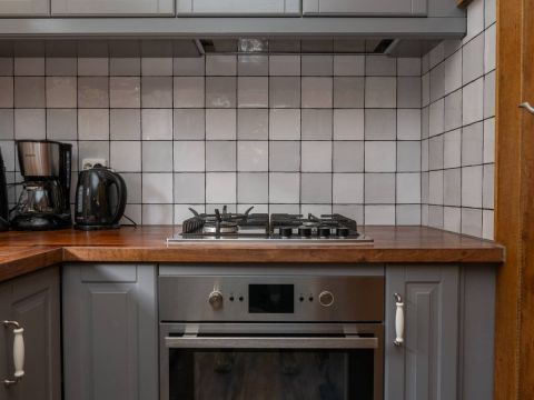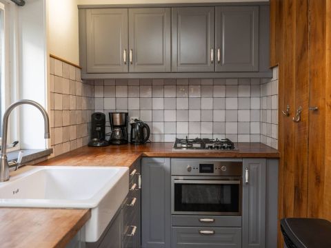 Aan de woonkamer grenst de open keuken, volledig ingericht met de nodige apparatuur en bergruimte. Ideaal om samen te koken, uitgebreid te ontbijten of snel iets klaar te maken tussen de eilandavonturen door.