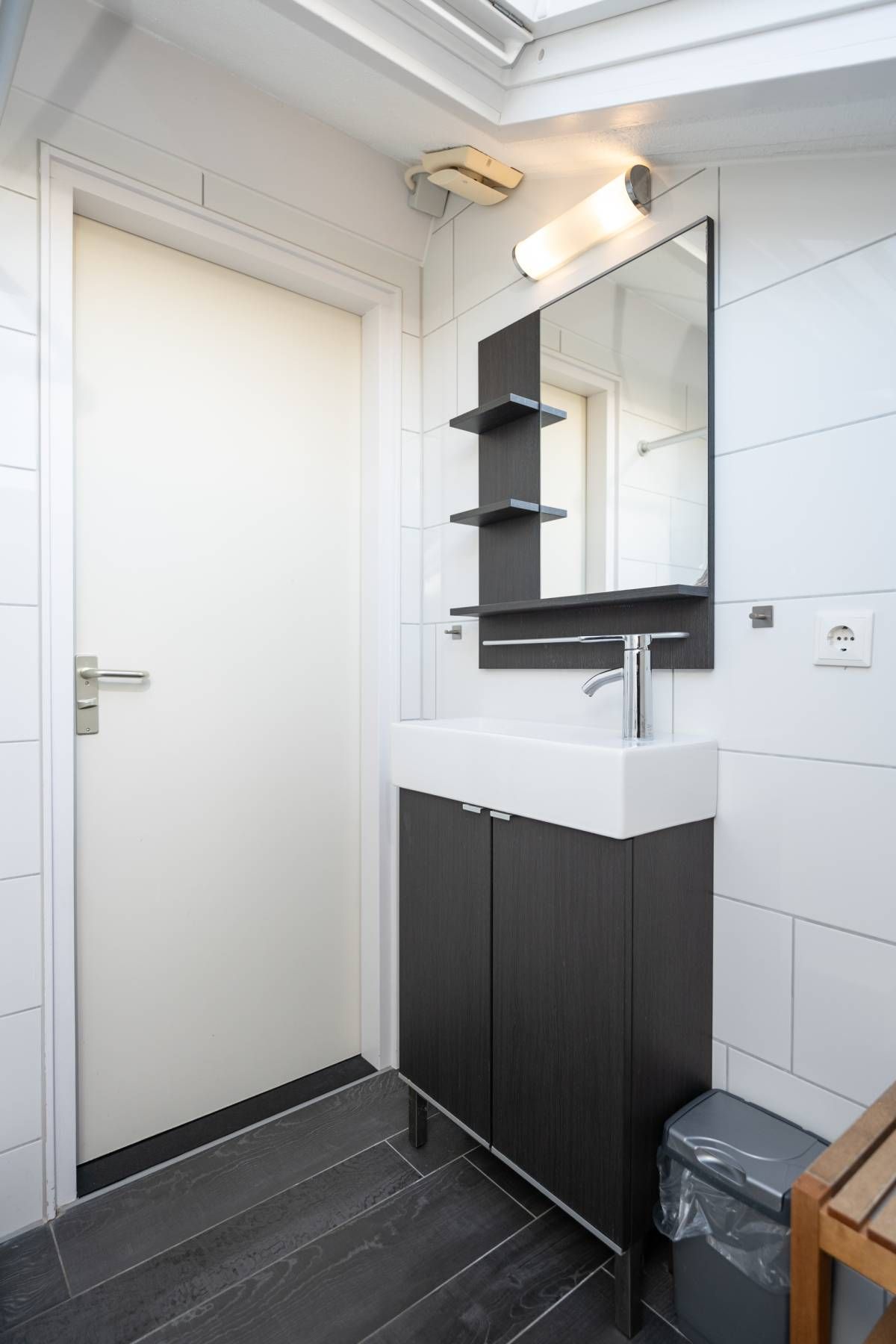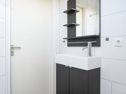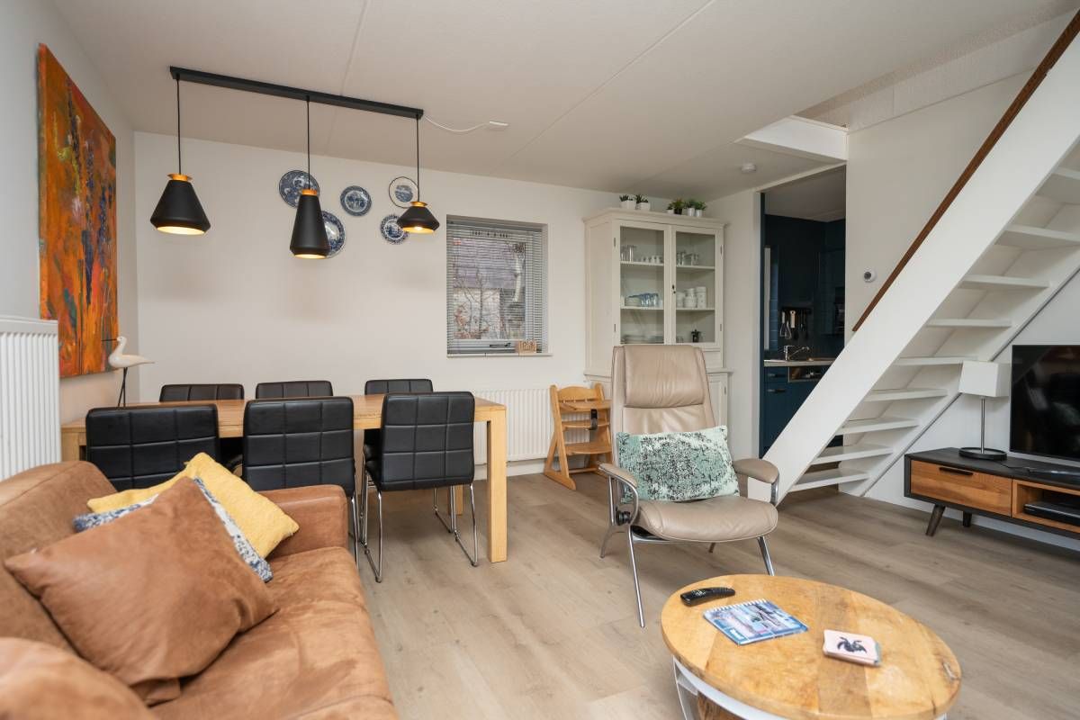 Met de comfortabele zit– en eethoek is er plek genoeg om samen te ontspannen en te genieten. De begane grond is voorzien van een nette PVC-vloer, die niet alleen modern oogt maar ook onderhoudsvriendelijk is.