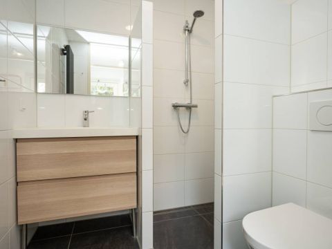 Op de begane grond is een ruime slaapkamer met openslaande deuren naar het terras en een moderne badkamer welke is voorzien van een inloopdouche, wastafelmeubel en toilet.