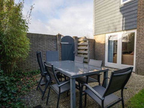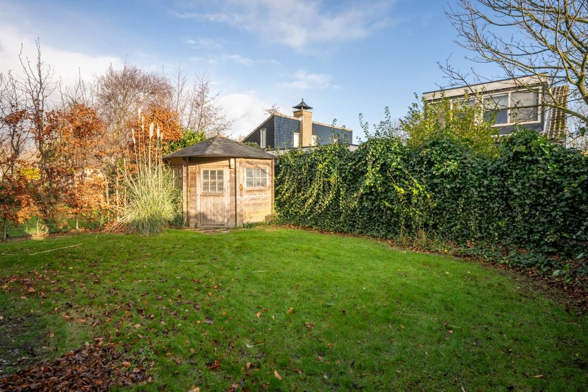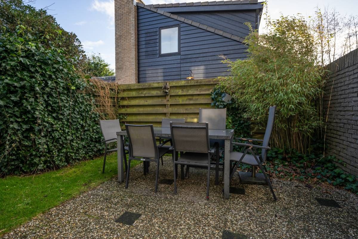 Naast de woning treft u een beschut terras aan waar u fijn privé kunt vertoeven en achter de woning is een heerlijke groene tuin met een vrijstaand houten tuinhuisje.
