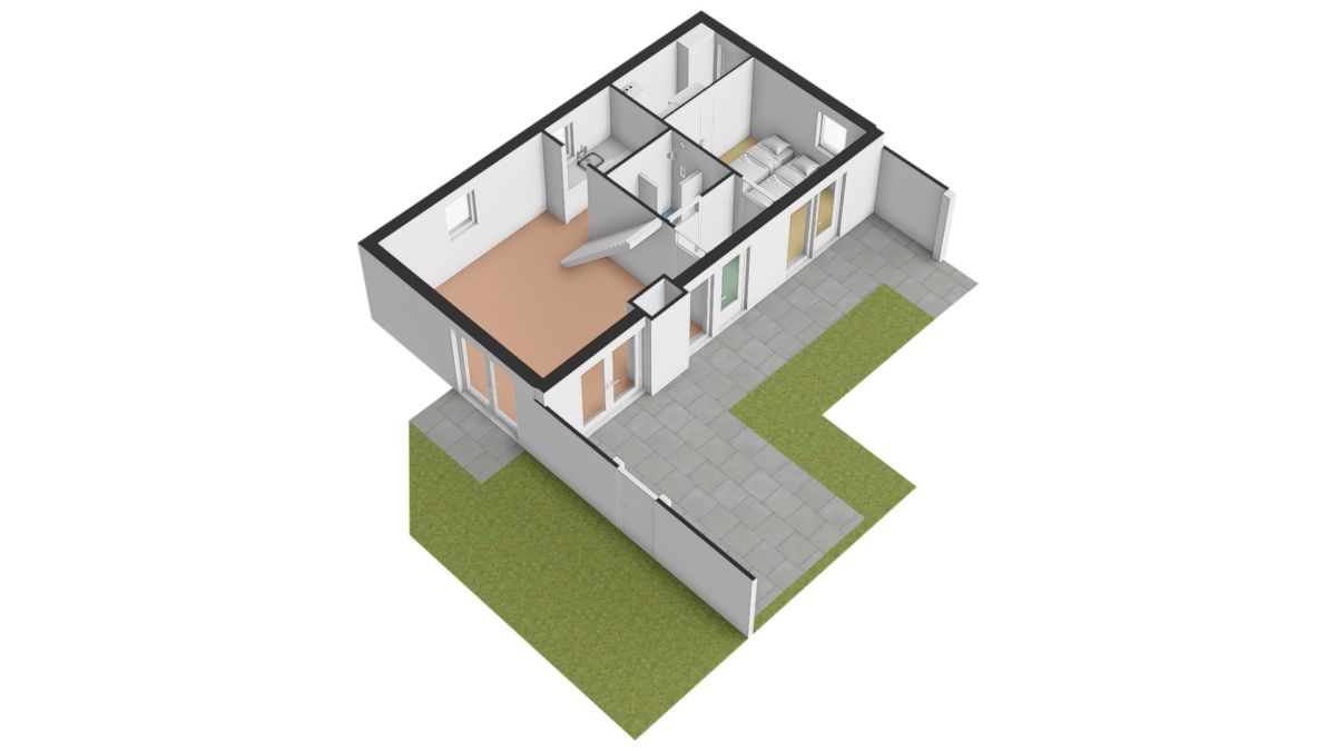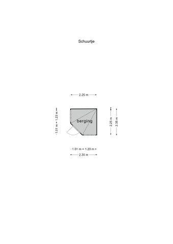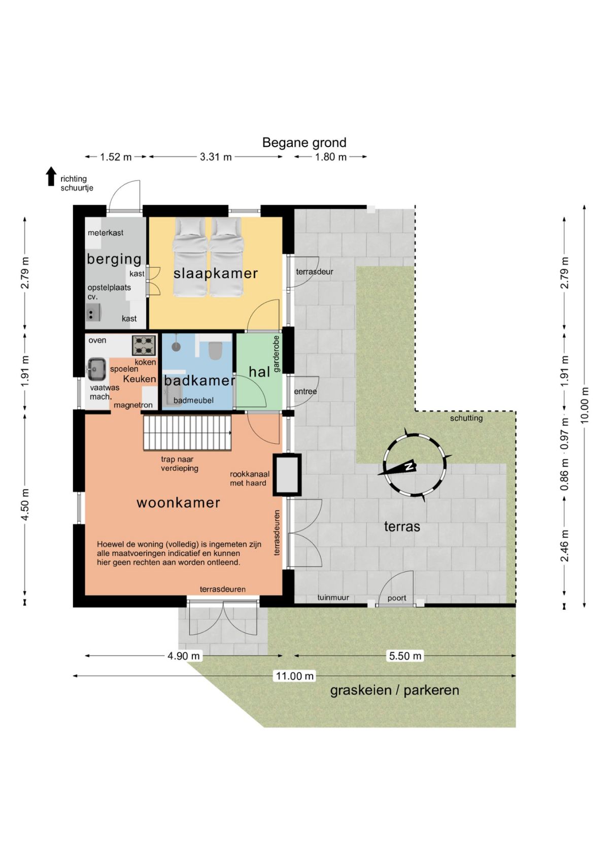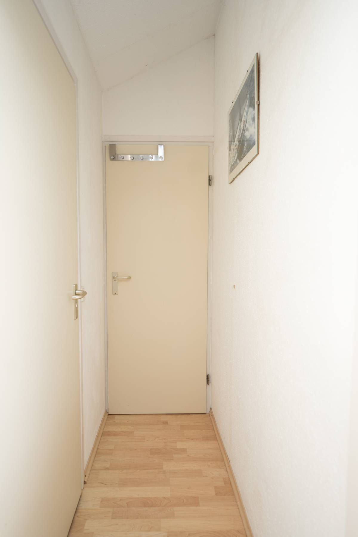 Indeling: Hal/entree, toegang tot de woonkamer en keuken, slaapkamer en badkamer.