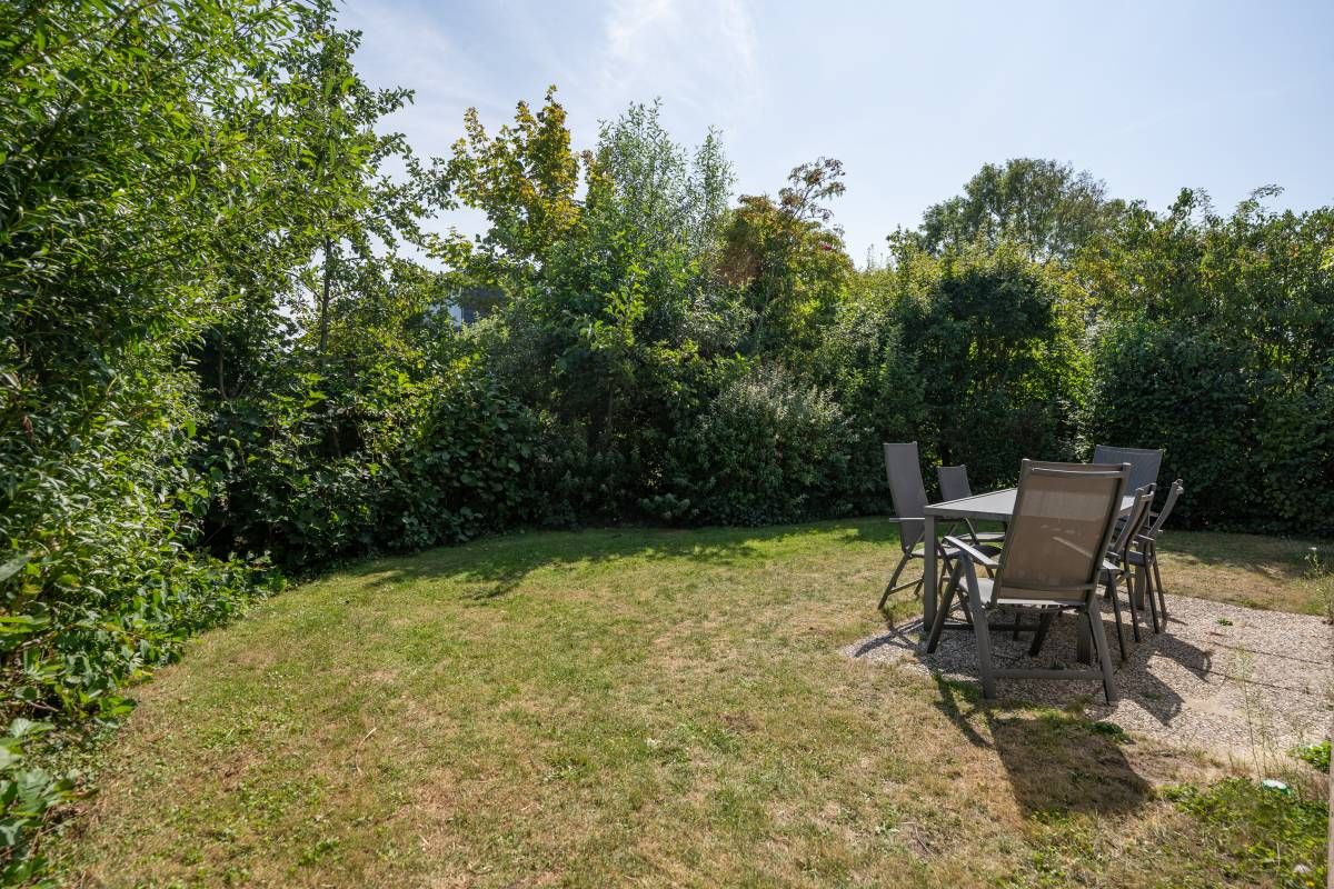 Ziet u zichzelf hier al zitten, zo ‘s ochtends vroeg met een vers gezet kopje koffie in de tuin? Ook hier geldt: netjes afgewerkt en aangenaam licht.
