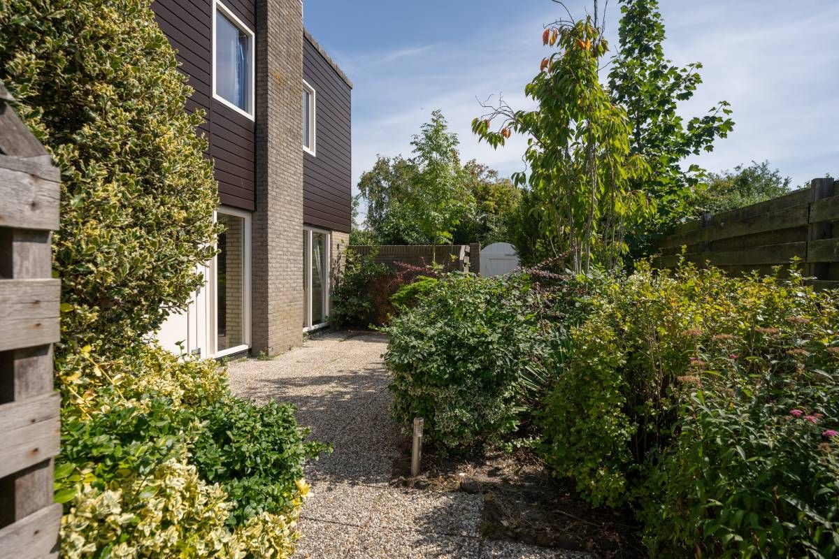 Rondom de woning ligt een fijne beschutte tuin, met aan de zijkant een bestraat terras direct grenzend aan de woning en hier vindt u zowel een plek om te genieten in de zon als ook in de schaduw. Aan de voorkant van de woning bevindt zich een handige buitenom bereikbare berging. Hier vindt u de opstelplaats voor de HR Cv-ketel, en is er voldoende ruimte voor het opbergen van spullen of het stallen van fietsen.