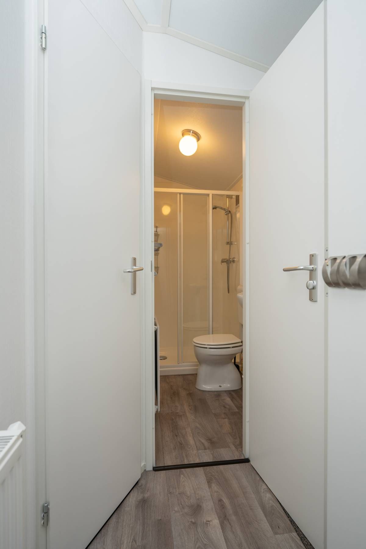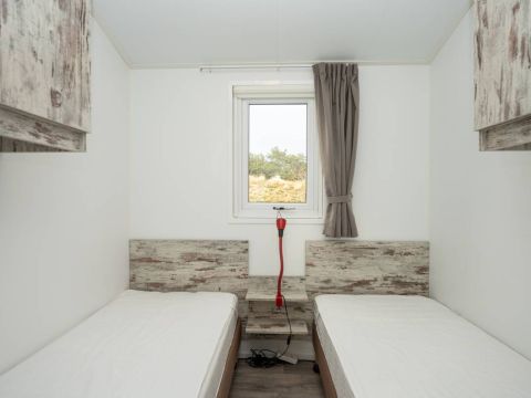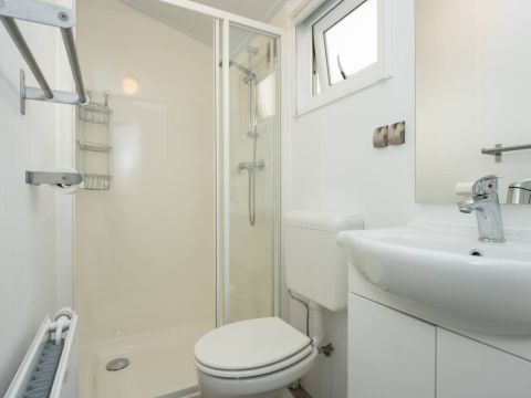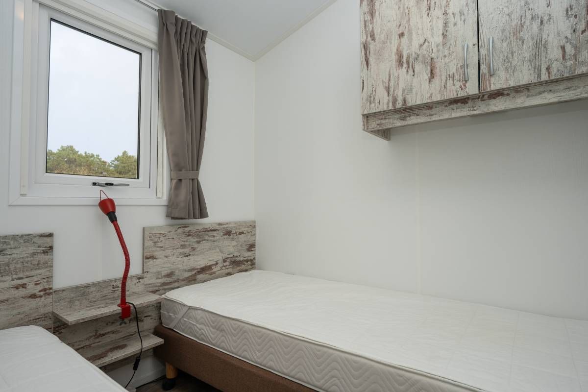 Het chalet beschikt over twee slaapkamers. De eerste slaapkamer is ruim van opzet en voorzien van een tweepersoonsbed en een nette kastenwand. De tweede slaapkamer beschikt over twee losse eenpersoonsbedden en eveneens kastruimte.