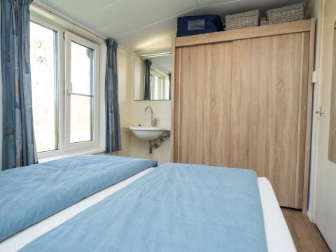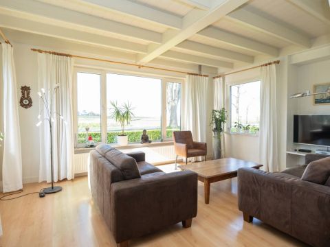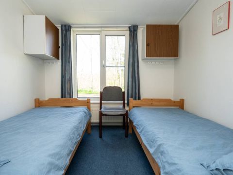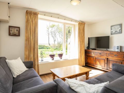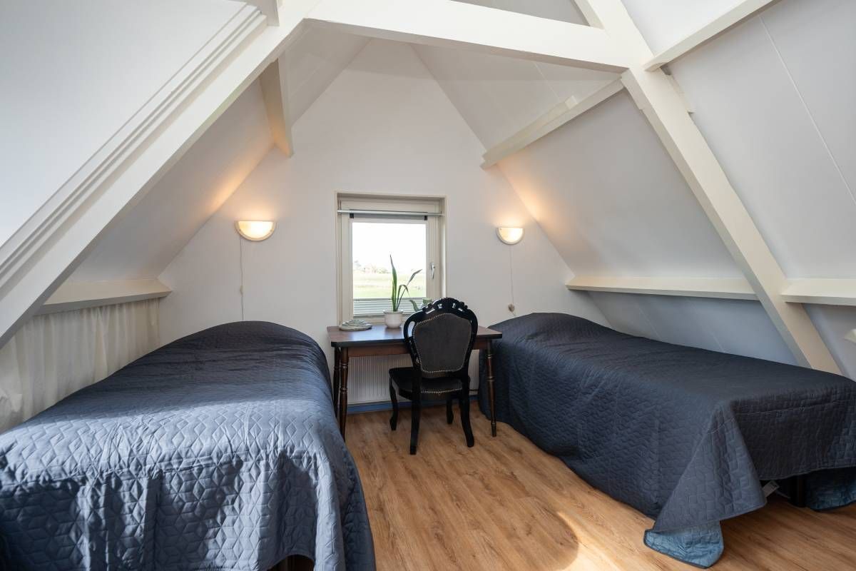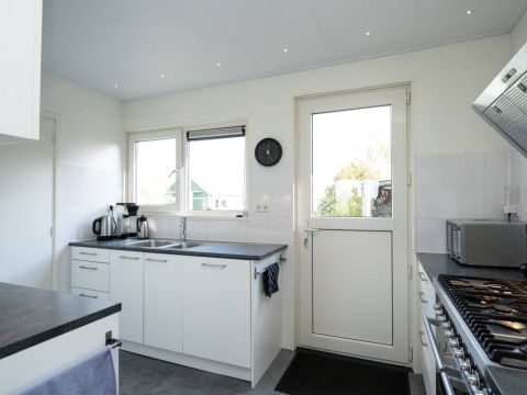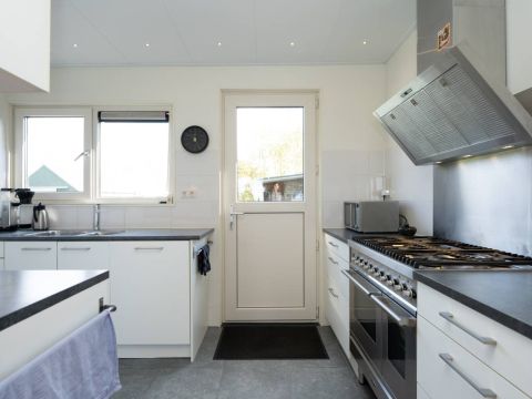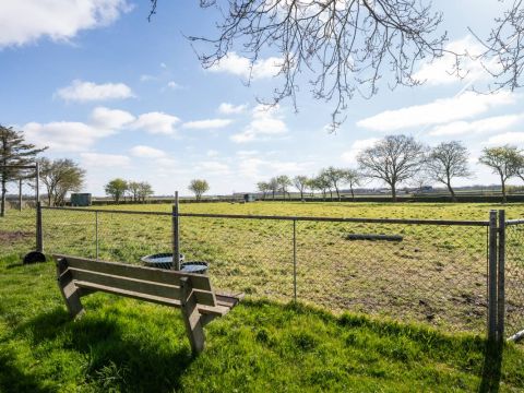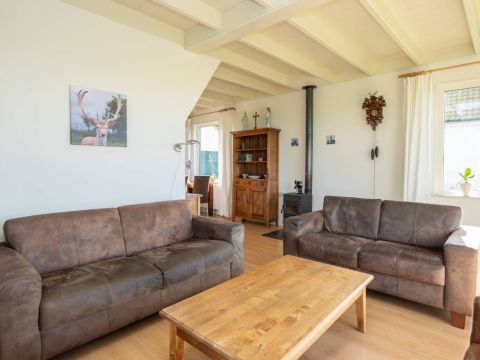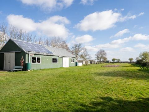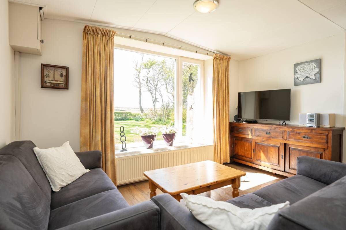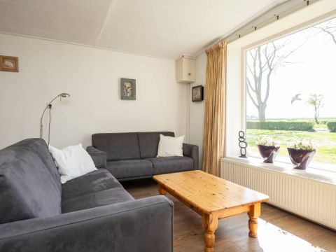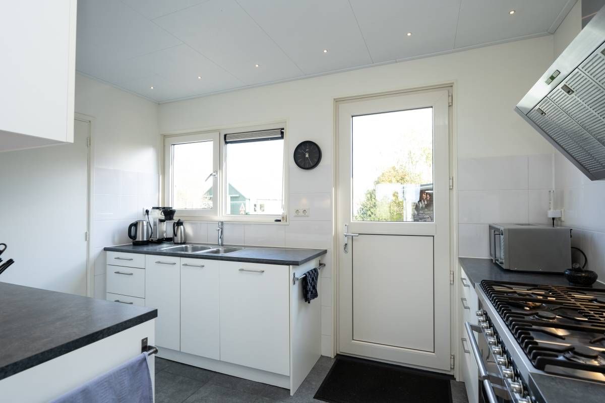 Het woonhuis: Hal/entree met toegang tot de slaapkamer/kantoor en tot de woonkamer met een heerlijk weids uitzicht over het landschap. Vanuit de woonkamer (en eveneens vanuit de hal) is de slaapkamer bereikbaar. Aan de achterzijde van de woonkamer bevinden zich de schuifdeuren. Deze geven toegang tot de uitgebreide keuken (compleet en netjes uitgevoerd), vervolgens de berging/bijkeuken en aansluitend het dubbele toilet.