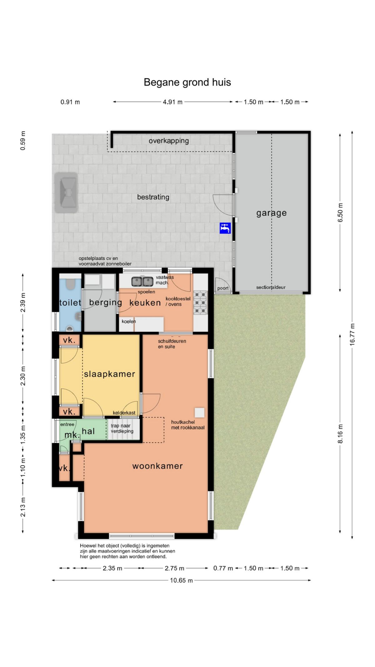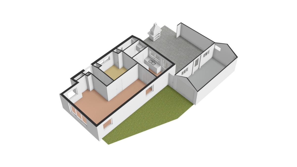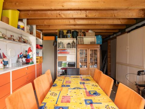 Naast/achter het huis, aansluitend bij het terras, bevindt zich de garage.