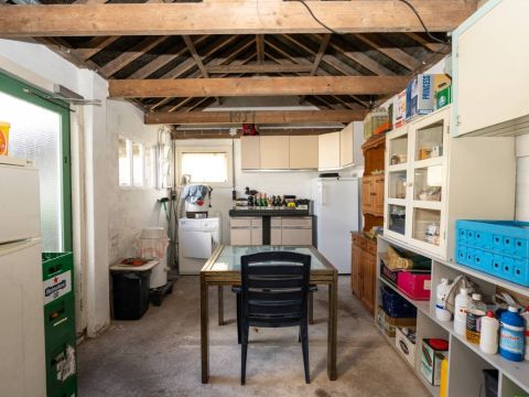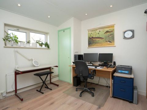 De slaapkamer/kantoor op de begane grond biedt toegang tot een kelderkast en 2 voorraadkasten.