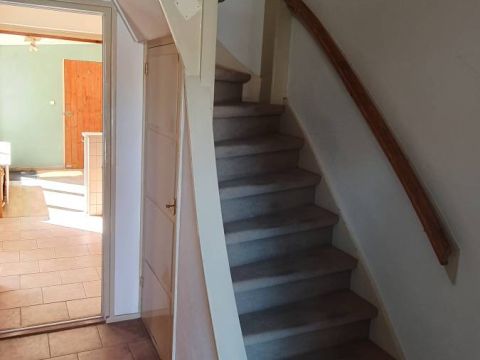 In de hal de trapopgang naar de verdieping. Via de overloop heeft u toegang tot vier slaapkamers en de badkamer. De slaapkamers variëren in grootte, waarbij twee kamers compacter zijn van opzet en één kamer ruimer (twee aaneengesloten ruimtes). De eenvoudige doucheruimte is volledig betegeld en voorzien van douche en wastafel.