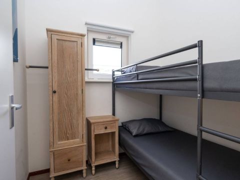 De derde slaapkamer is bereikbaar via de living. Deze slaapkamer is voorzien van een keurig stapelbed.