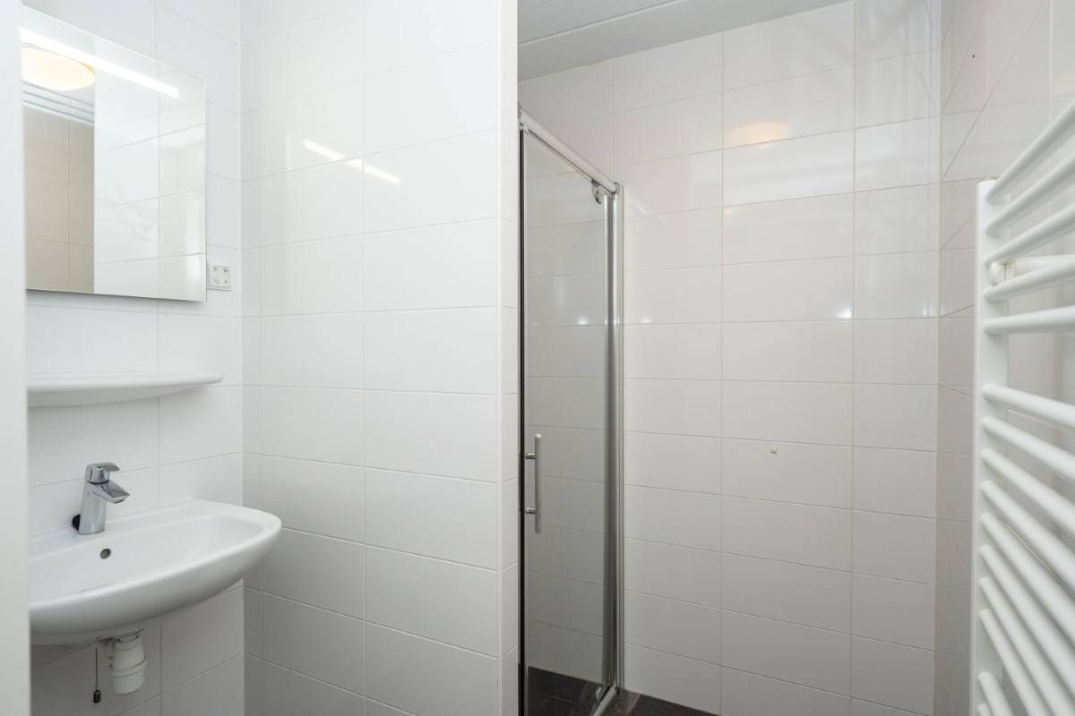 In de hal een tweede moderne badkamer welke is uitgerust met inloopdouche en een wastafel.