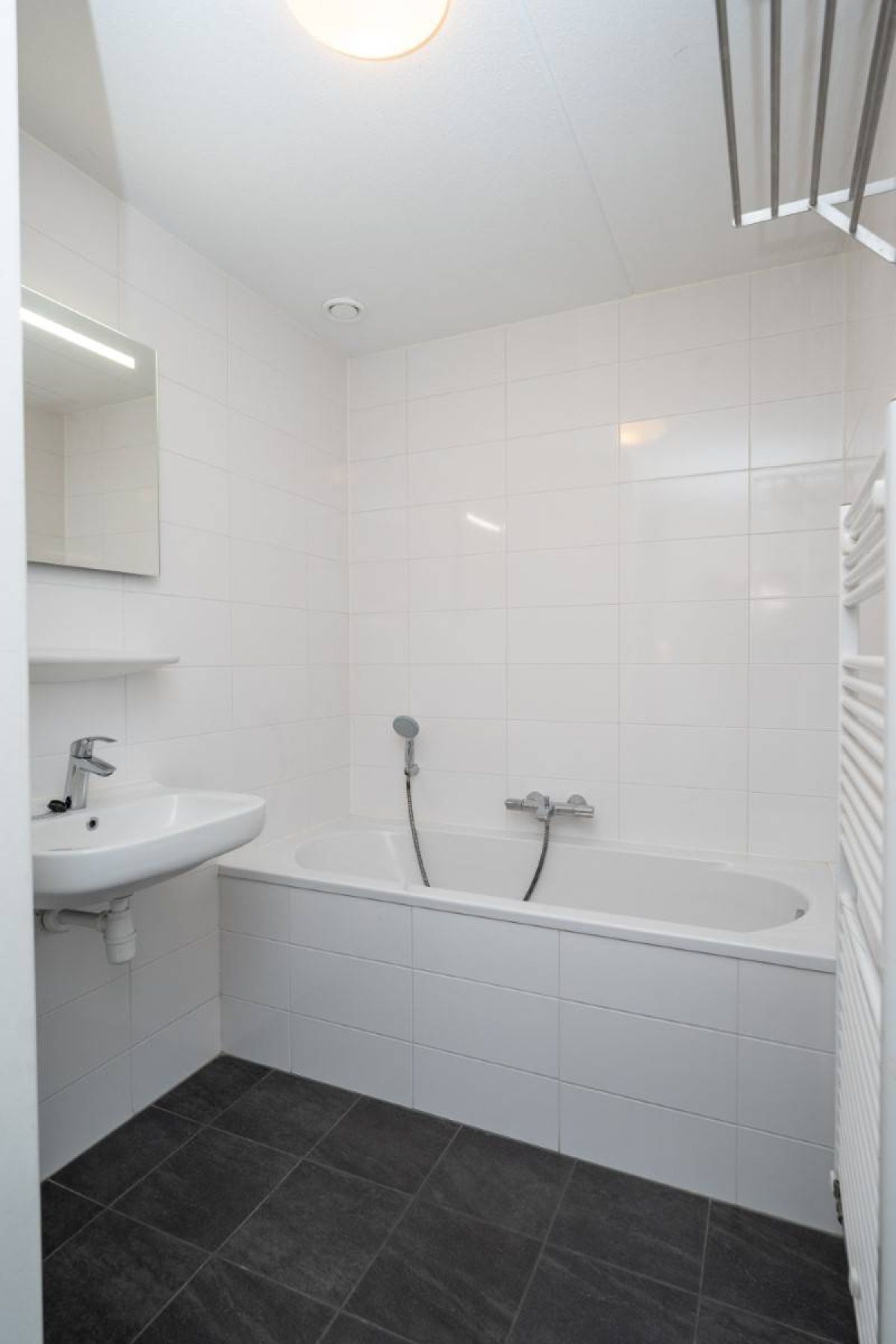 Aansluitend aan de slaapkamer komt u in de badkamer. De nette badkamer beschikt over een ligbad en een wastafel.