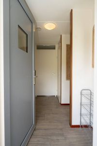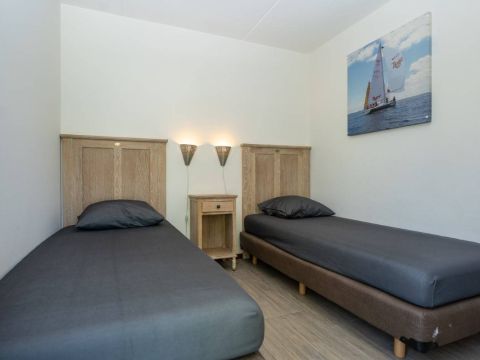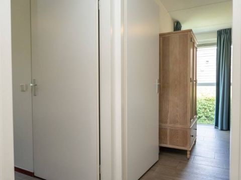 Vanuit de hal zijn twee slaapkamers bereikbaar. De eerste slaapkamer biedt voldoende ruimte om comfortabel te overnachten en kleding op te bergen.
