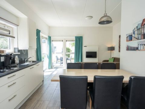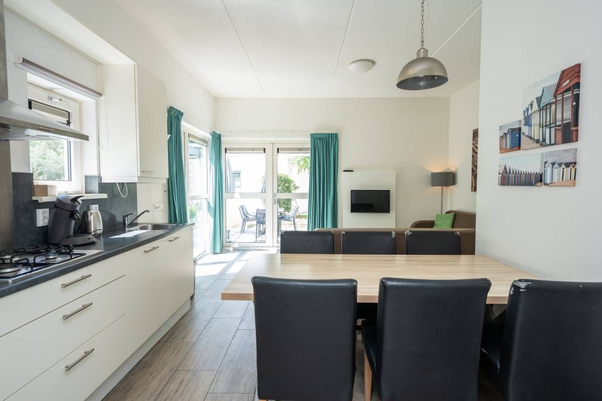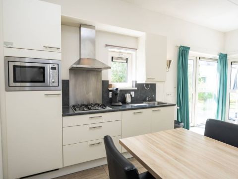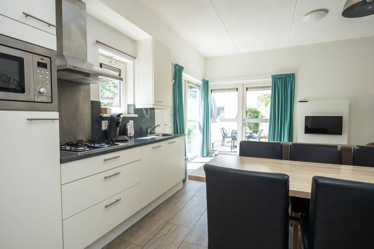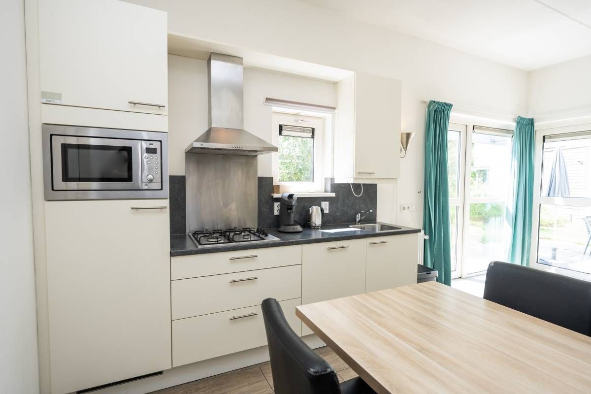 De compacte keuken is van diverse gemakken voorzien. Hier kunt u een heerlijke maaltijd bereiden met prettig gezeldschap.