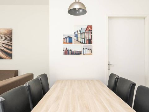 De openslaande deuren bieden een mooi lichtinval in de woonkamer en u loopt gemakkelijk naar het terras waar u ook fijn kunt zitten.