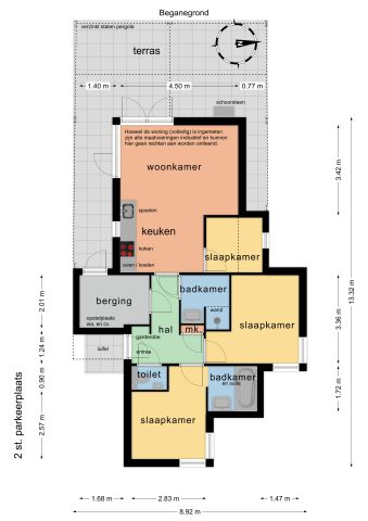 Tevens is er een inpandige berging, met opstelplaats voor wasmachine en droger.