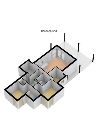 Entree via de hal met toegang tot de diverse vertrekken. Ruime en lichte woonkamer met openslaande deuren naar het terras en de tuin. De begane grond is voorzien van een moderne tegelvloer met vloerverwarming.