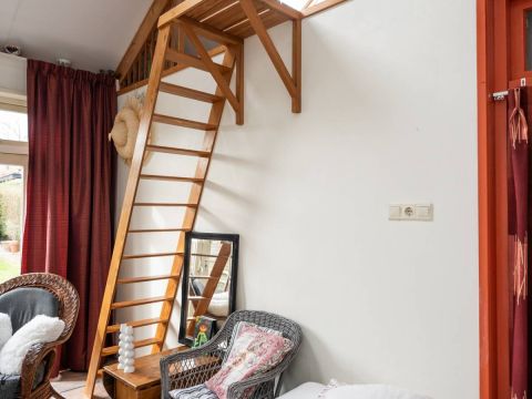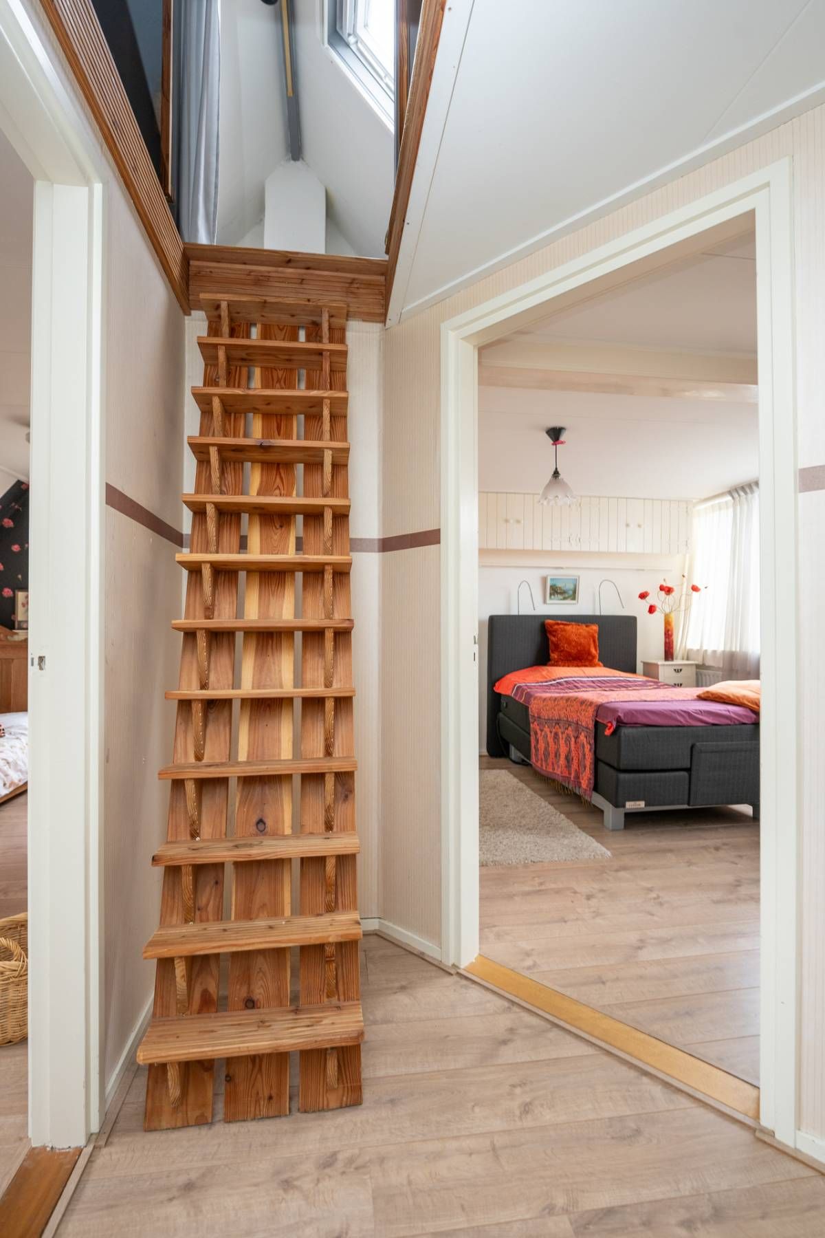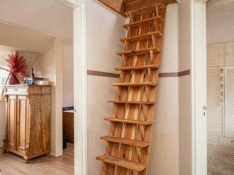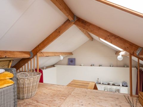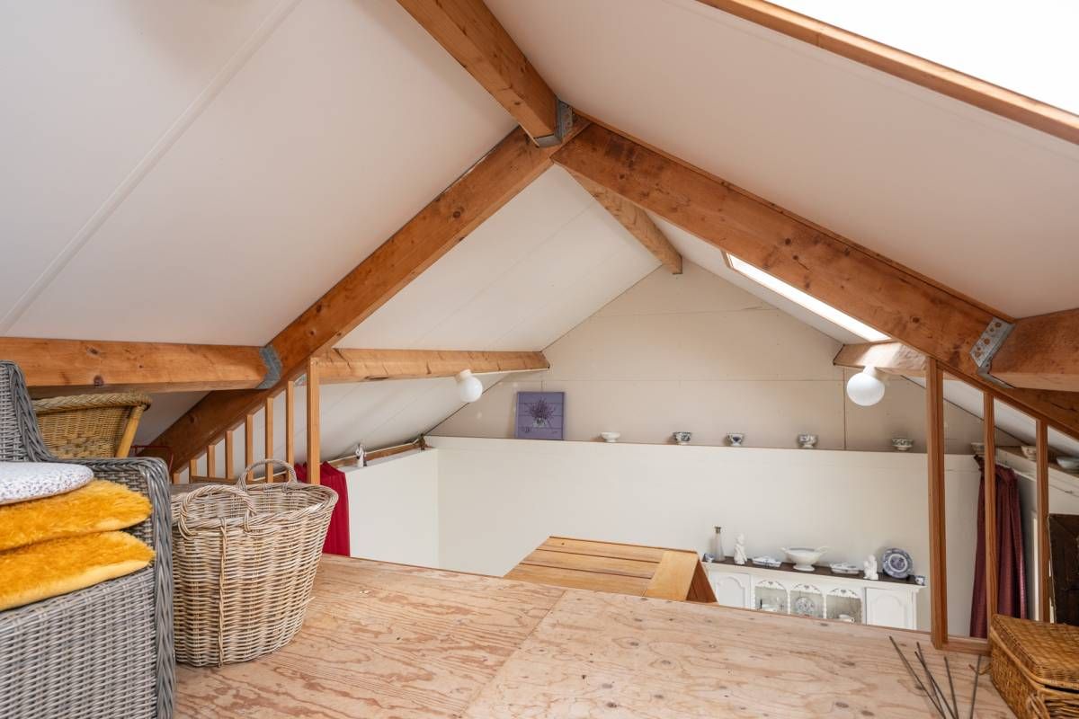 Zolder | De zolder met dakraam is middels de houten trap bereikbaar en biedt voldoende opberg ruimte en een extra slaapplaats. Het is middels een luik afsluitbaar.