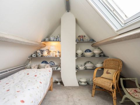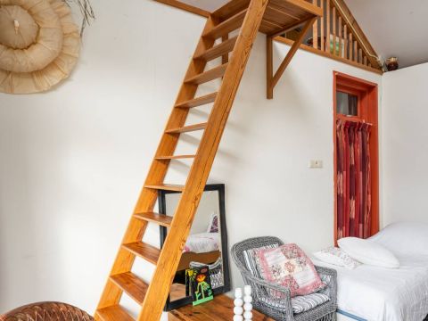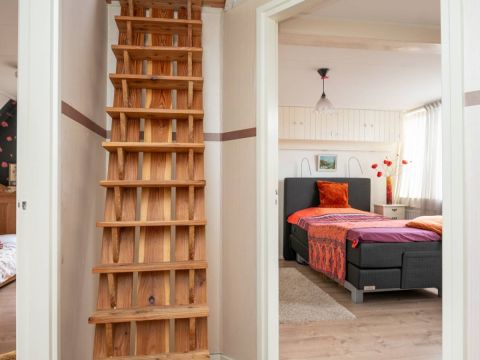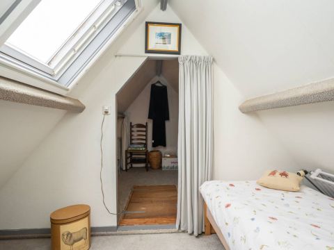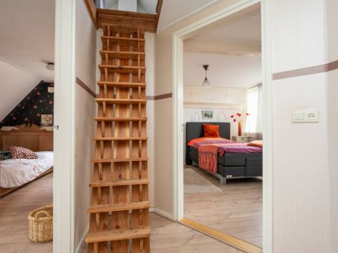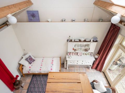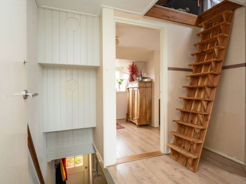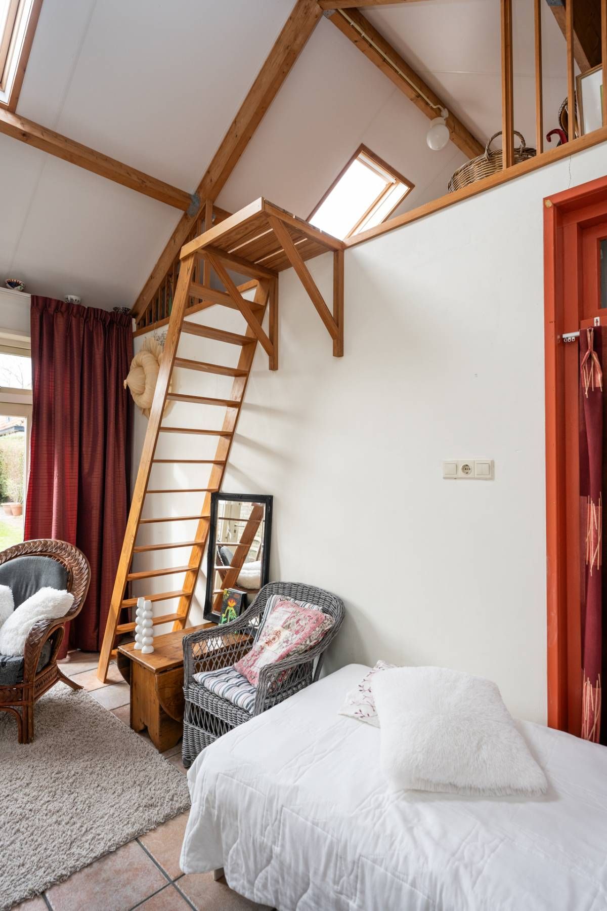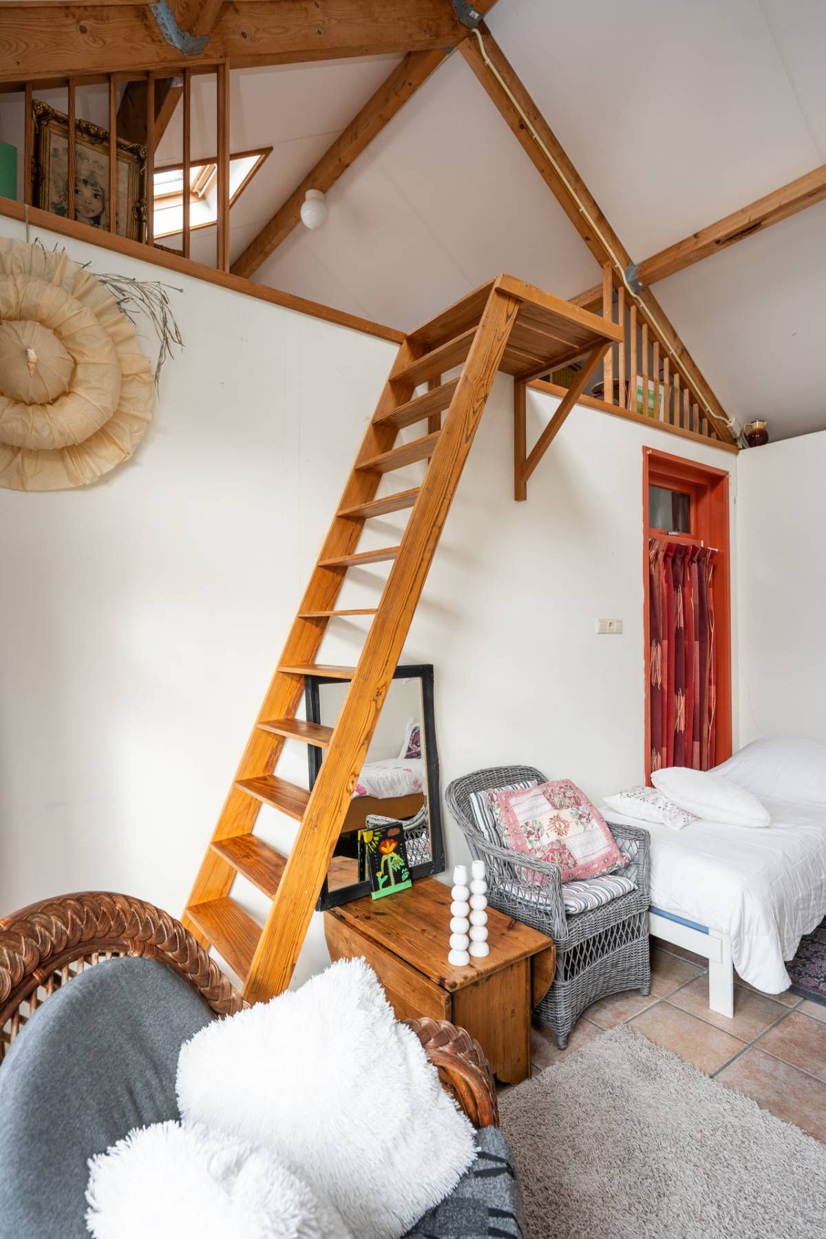 Zolder | De zolder met dakraam is middels de houten trap bereikbaar en biedt voldoende opberg ruimte en een extra slaapplaats. Het is middels een luik afsluitbaar.