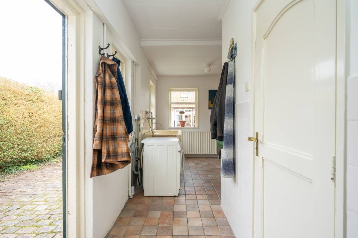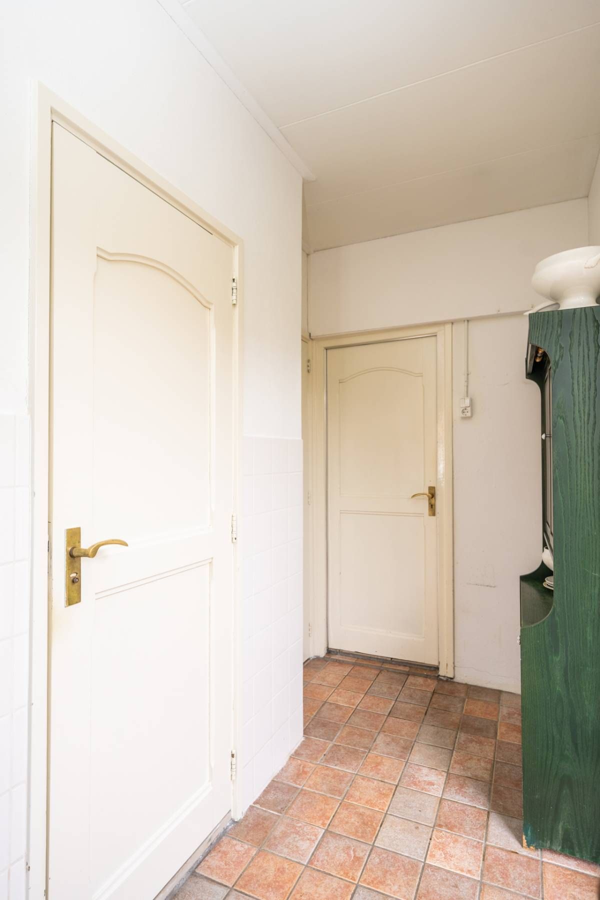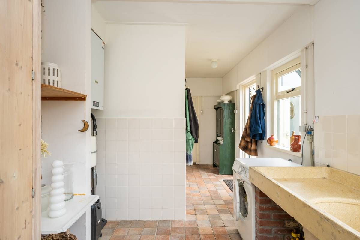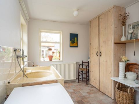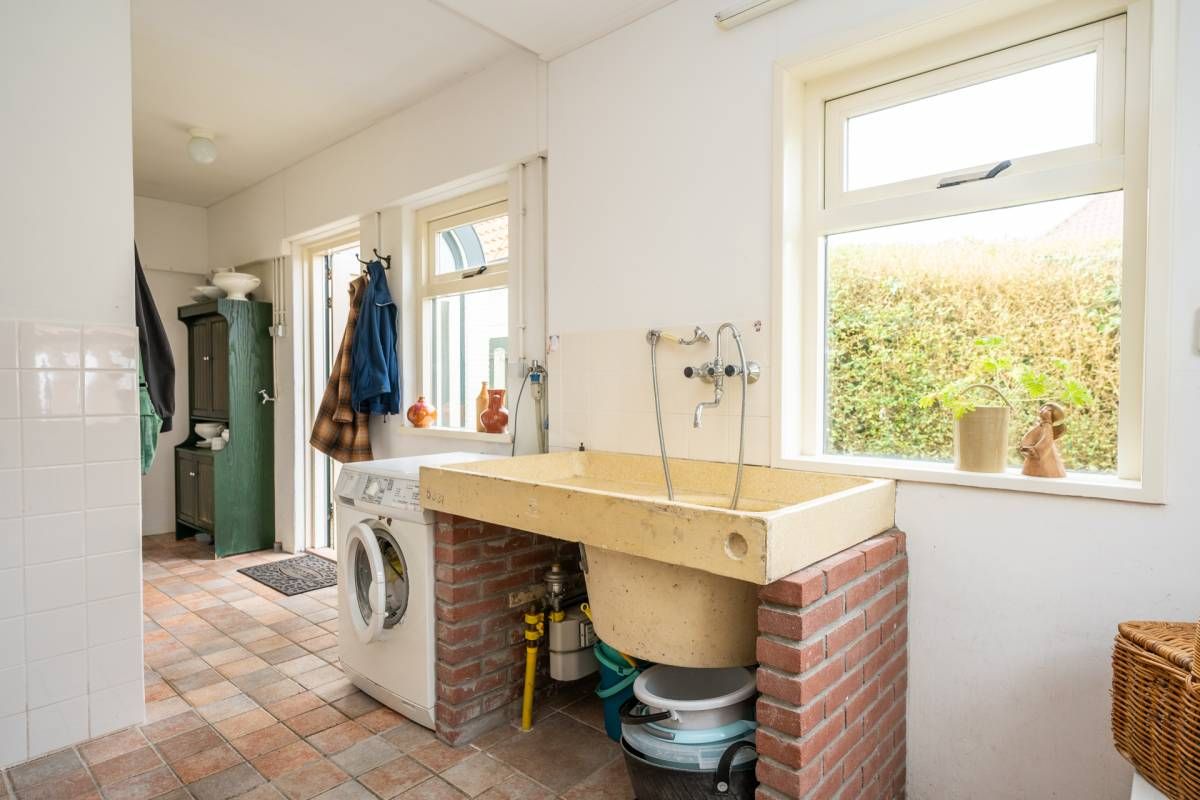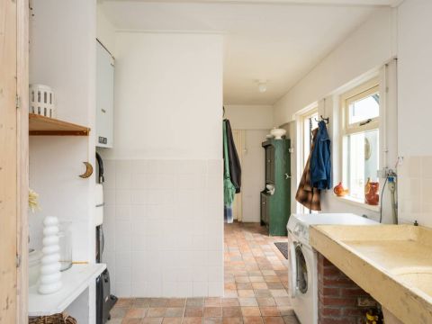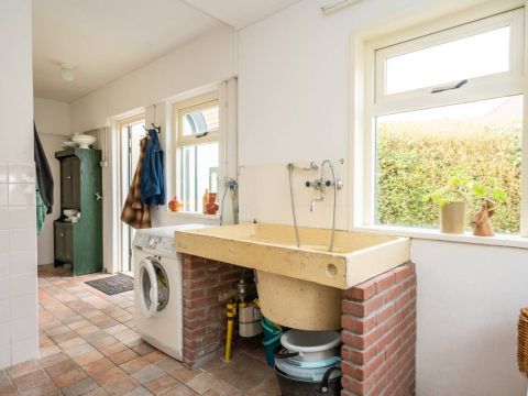 In de bijkeuken is de opstelling voor de wasmachine en droger, en een deur welke toegang biedt tot de tuin.