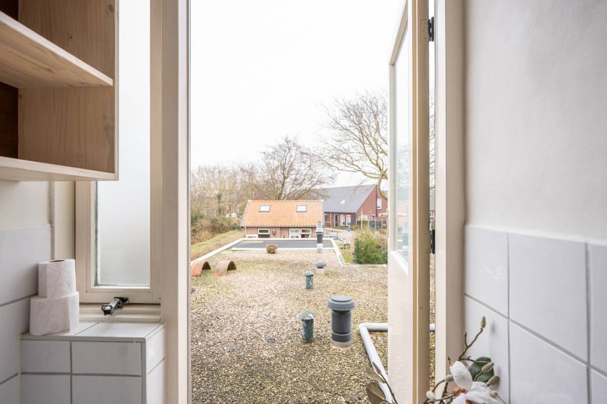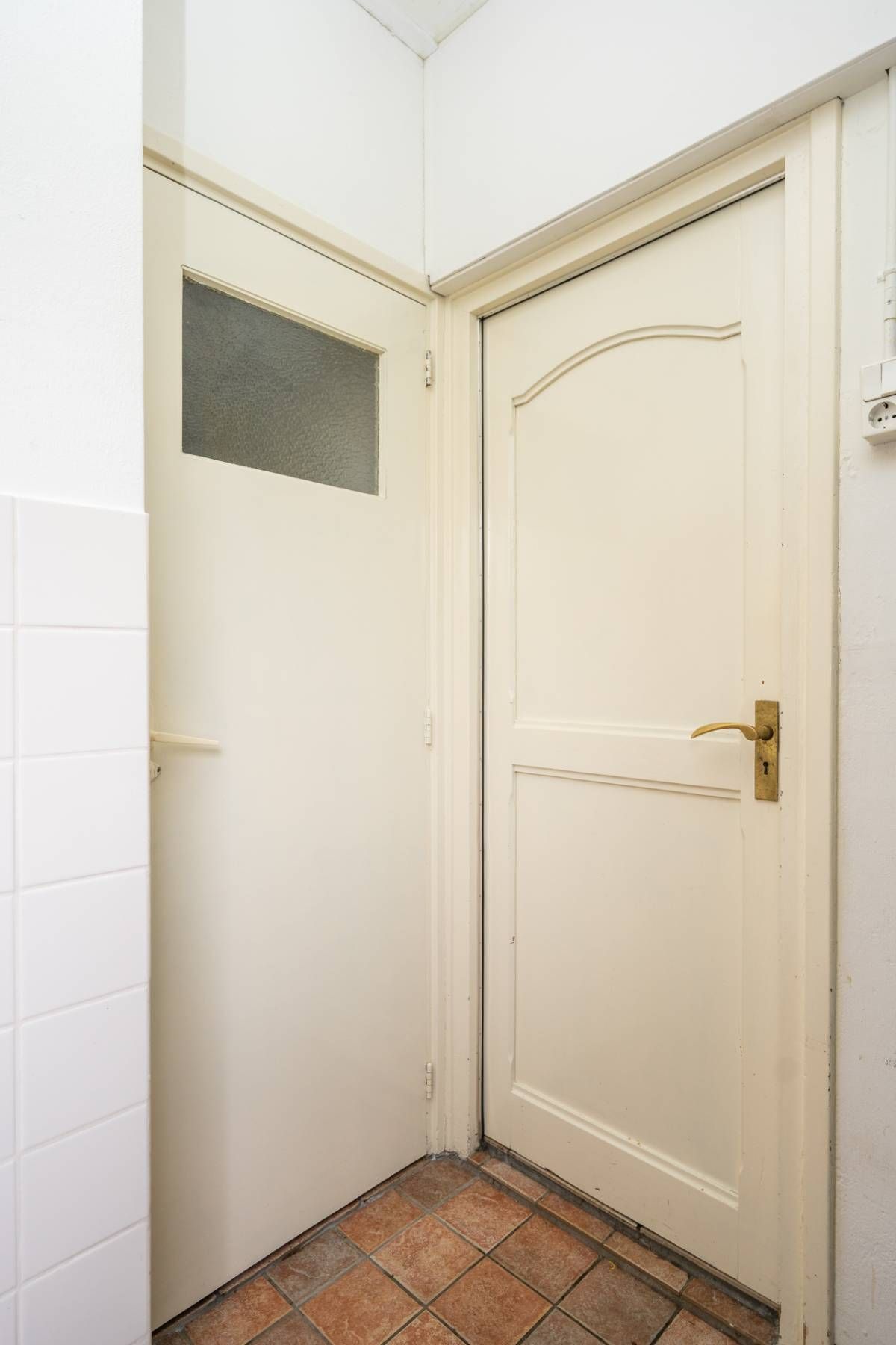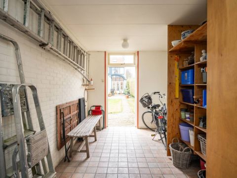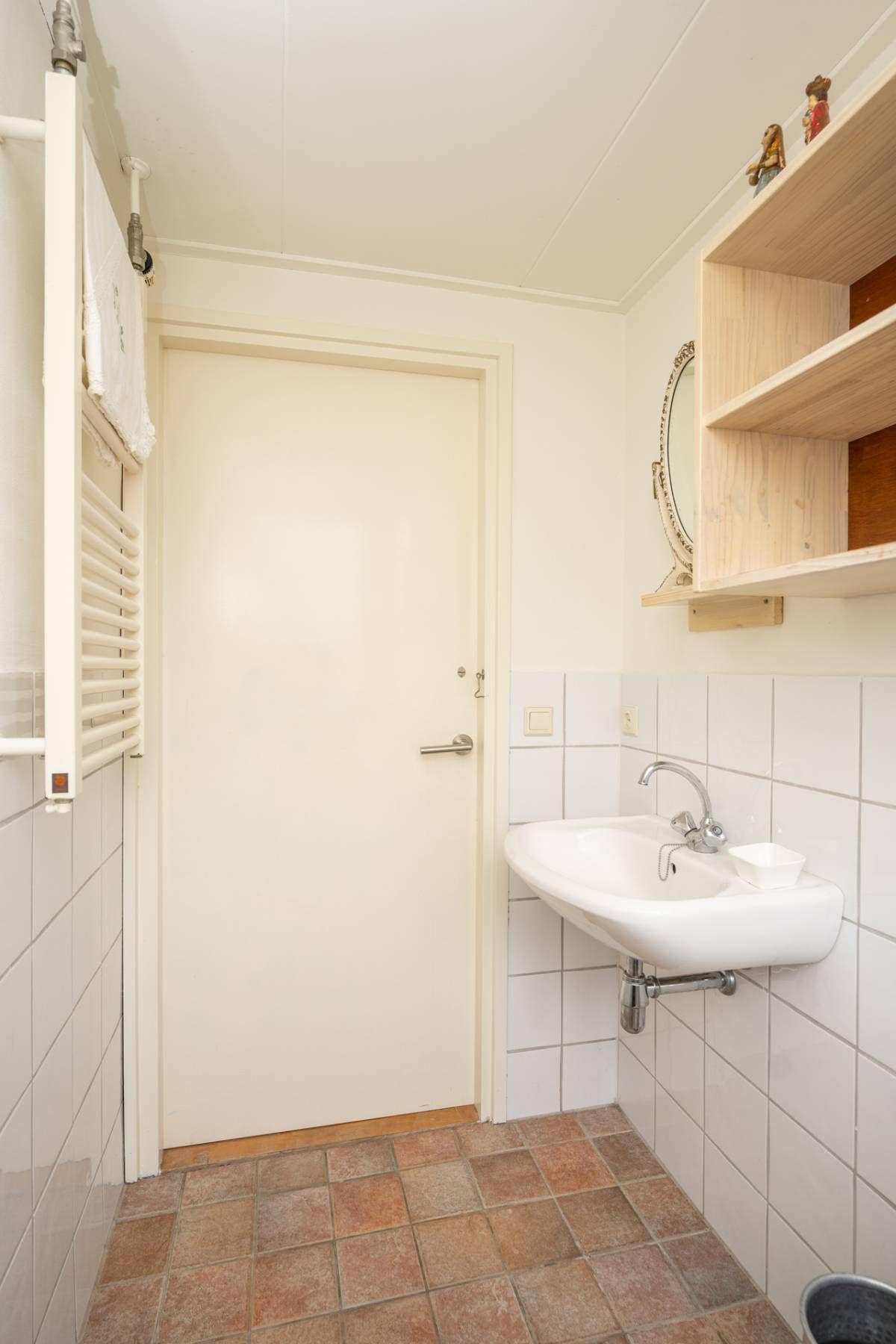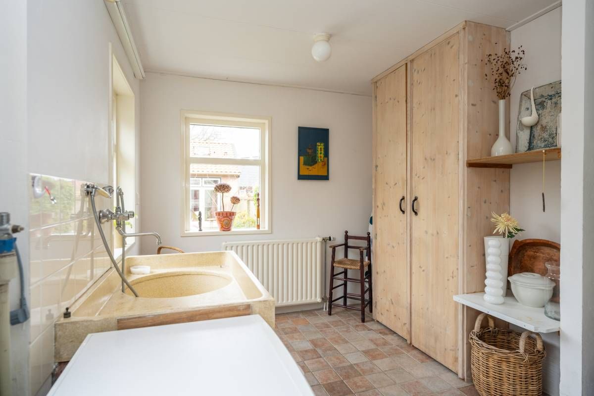 In de bijkeuken is de opstelling voor de wasmachine en droger, en een deur welke toegang biedt tot de tuin.
