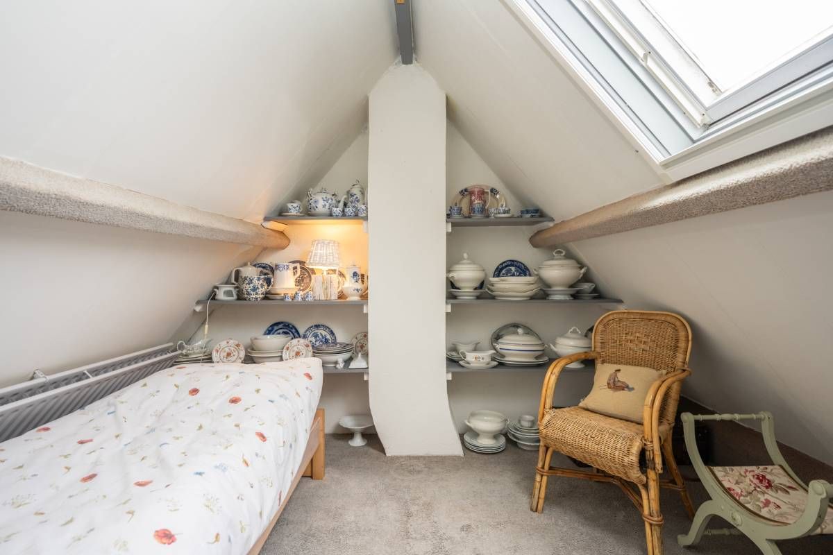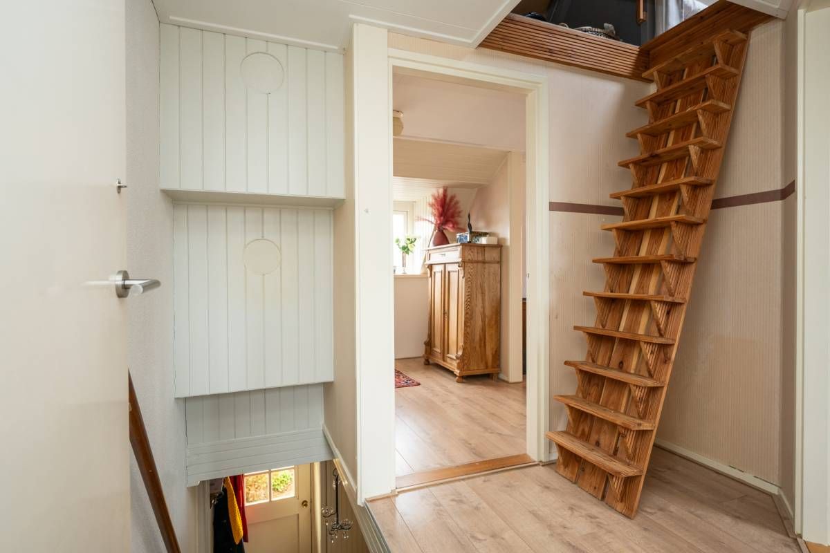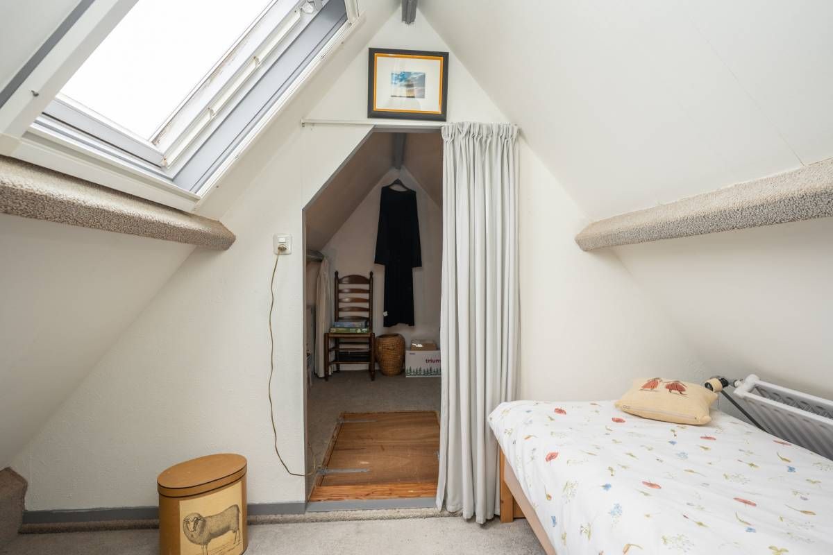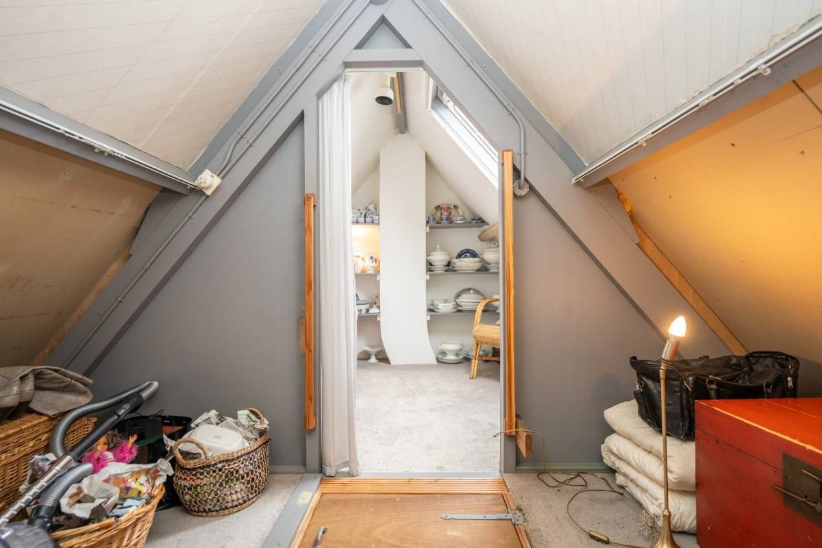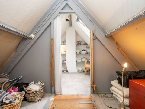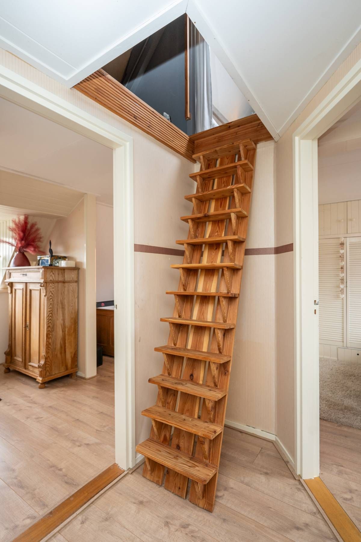 Via de houten open trap is de zolder bereikbaar met voldoende opbergruimte. Door de grote dakramen is hier voldoende licht aanwezig.