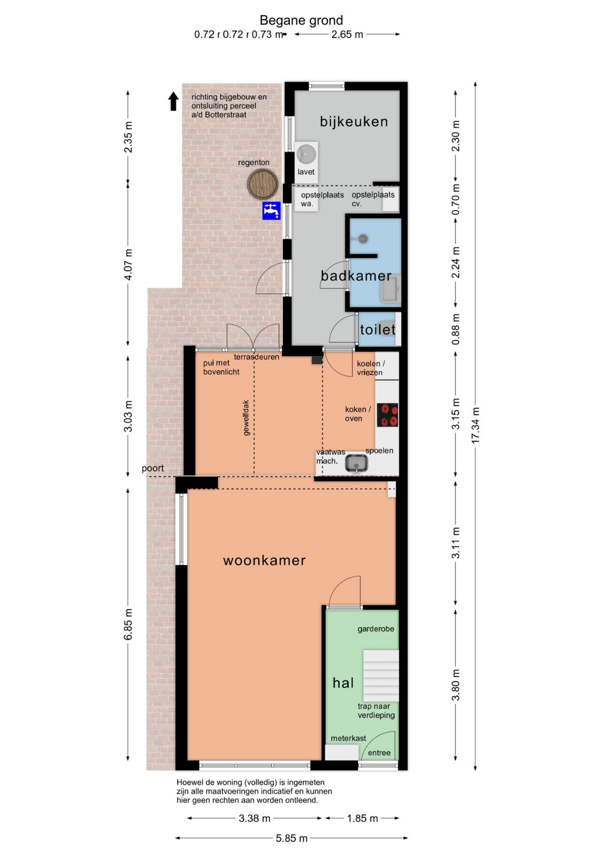 De woning heeft een poort aan de zijkant van het huis en een ontsluiting aan de achterzijde met toegang tot de Botterstraat en het grote openbare parkeerterrein.