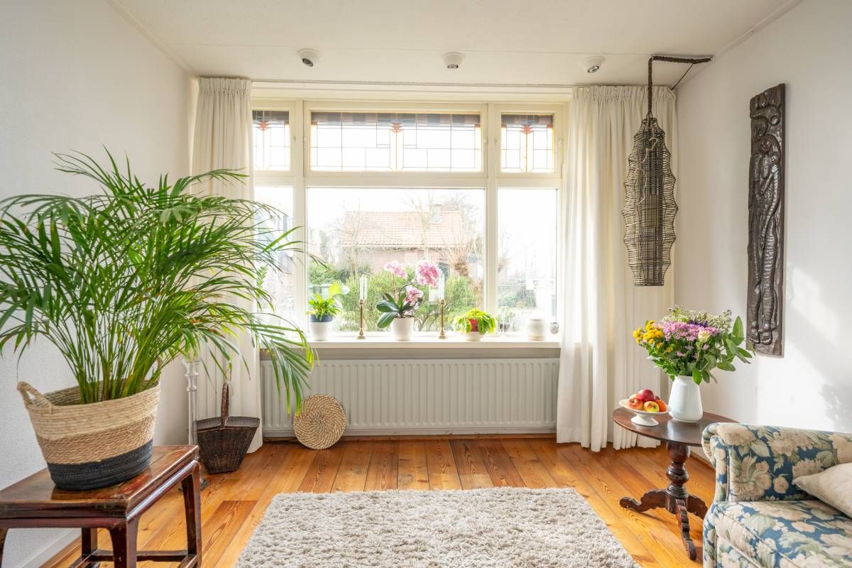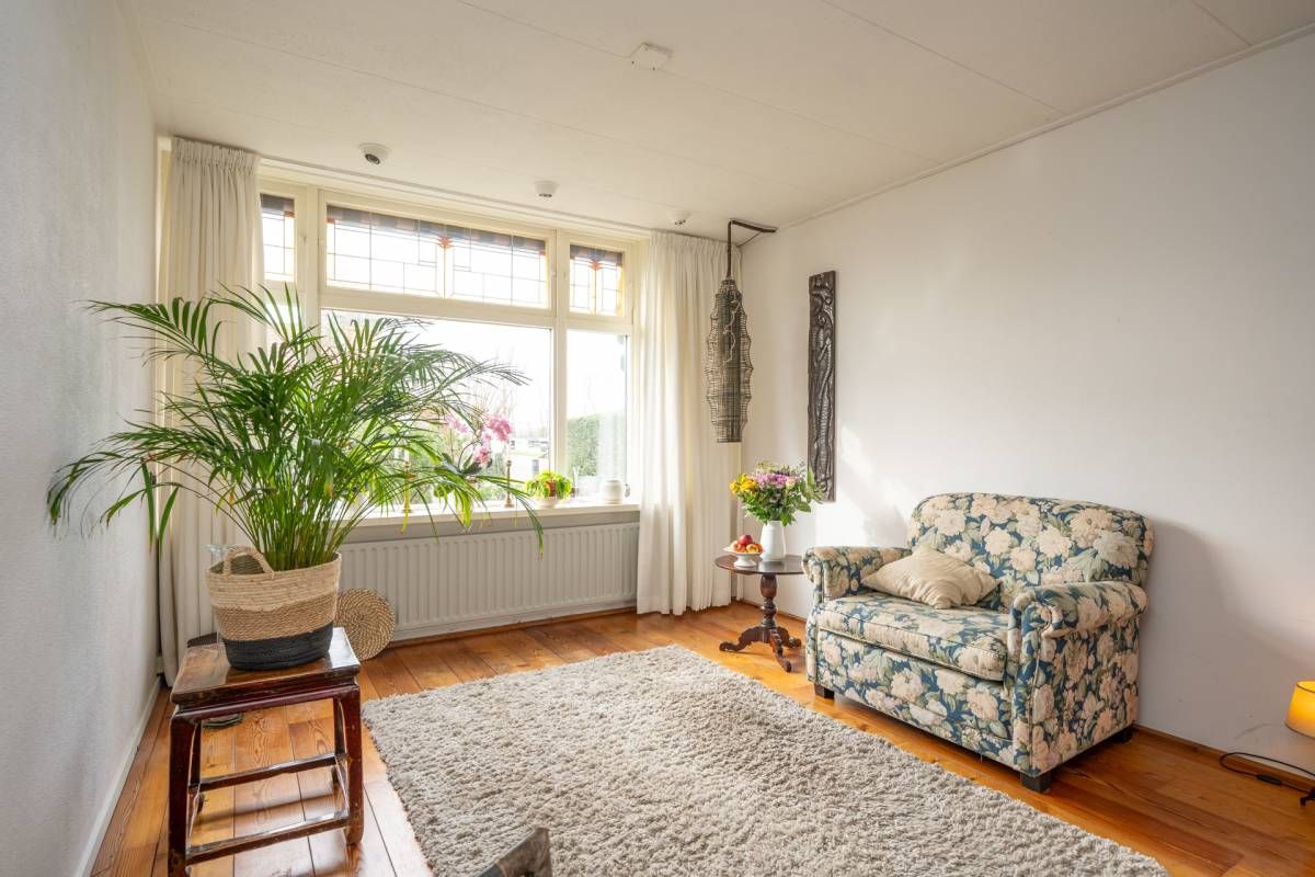 Door de ramen aan de voor– en zijkant, alsmede de openslaande deuren aan de achterzijde heeft de woonkamer een prachtige lichtinval.