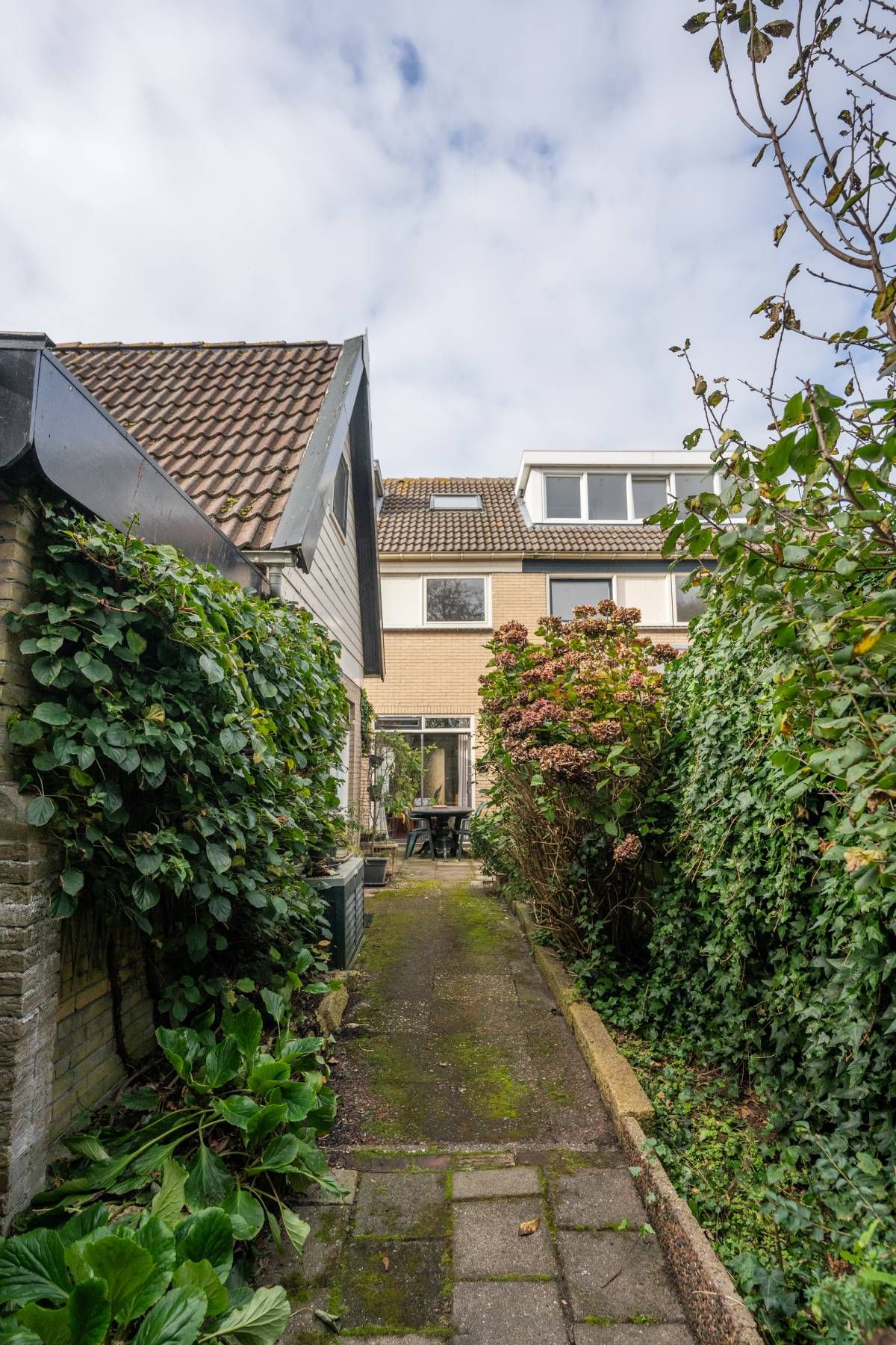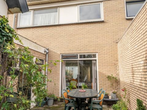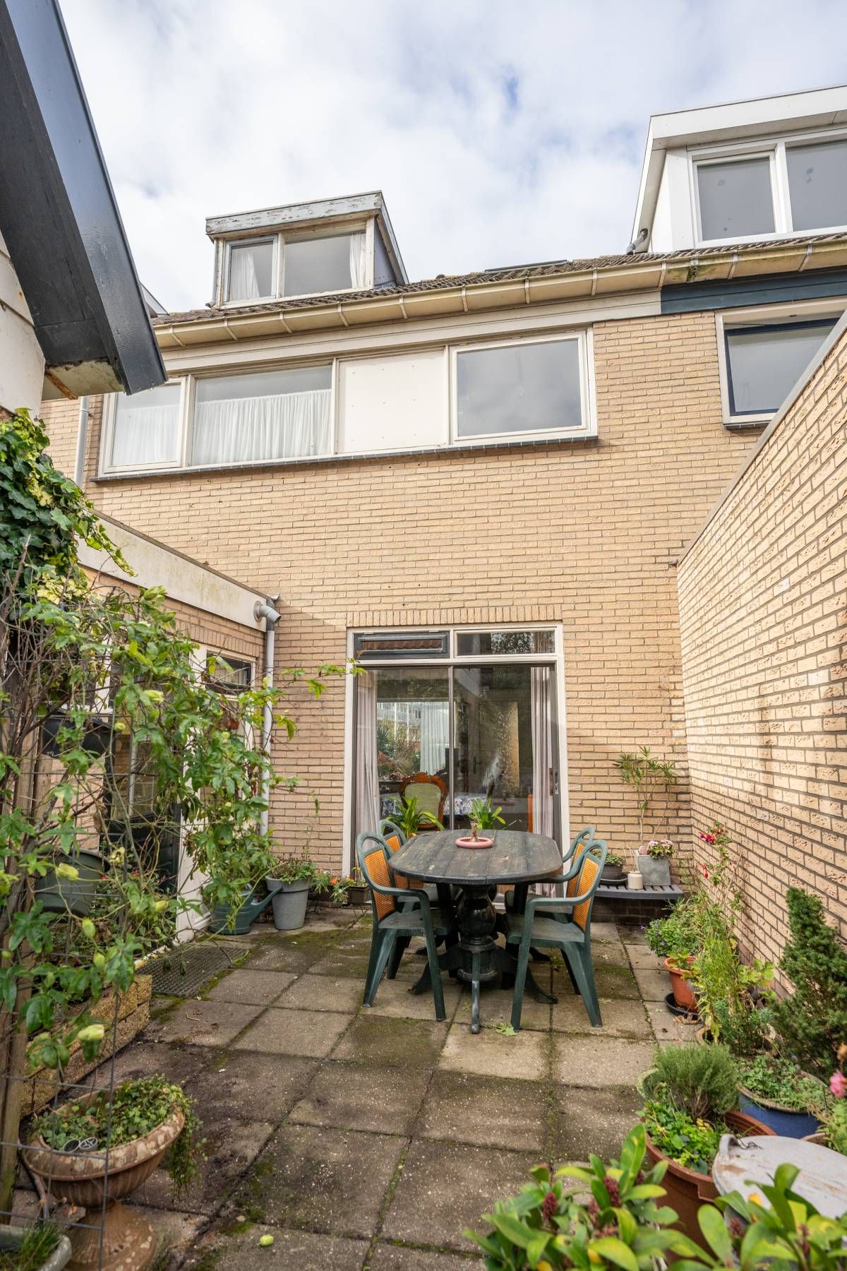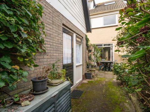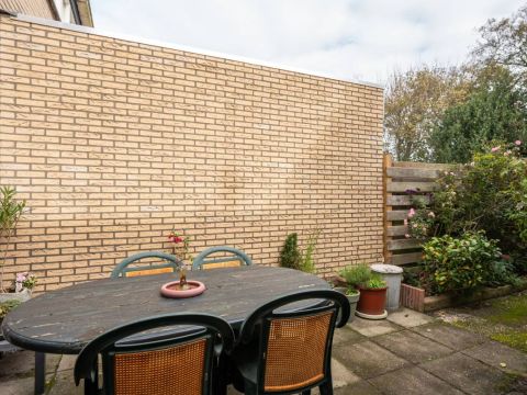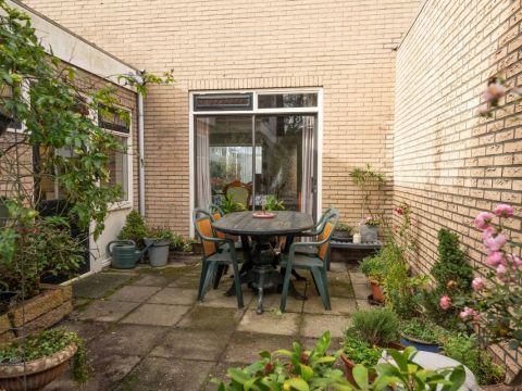Tuin | De zonnige achtertuin met achterom is grotendeels bestraat en biedt diverse plekjes om heerlijk privé te vertoeven.