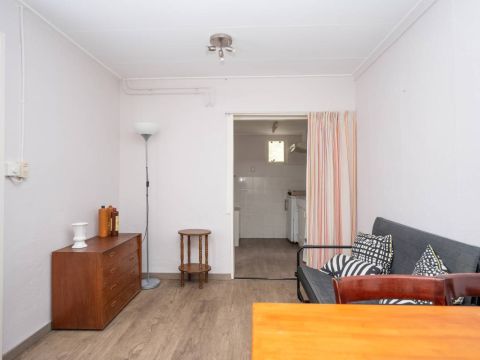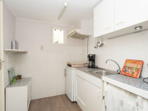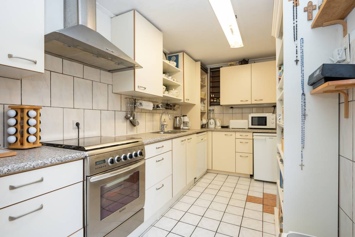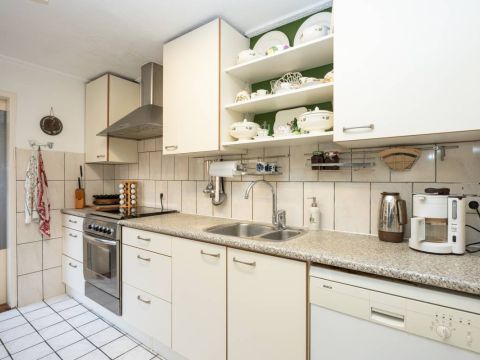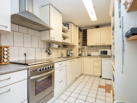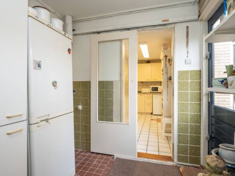 De keuken is eenvoudig van opzet maar compleet en netjes onderhouden en tevens voorzien van enkele praktische apparatuur. Aansluitend aan de keuken bevindt zich een bijkeuken met een deur naar de achtertuin. Via de bijkeuken is er toegang tot het achterste woongedeelte.