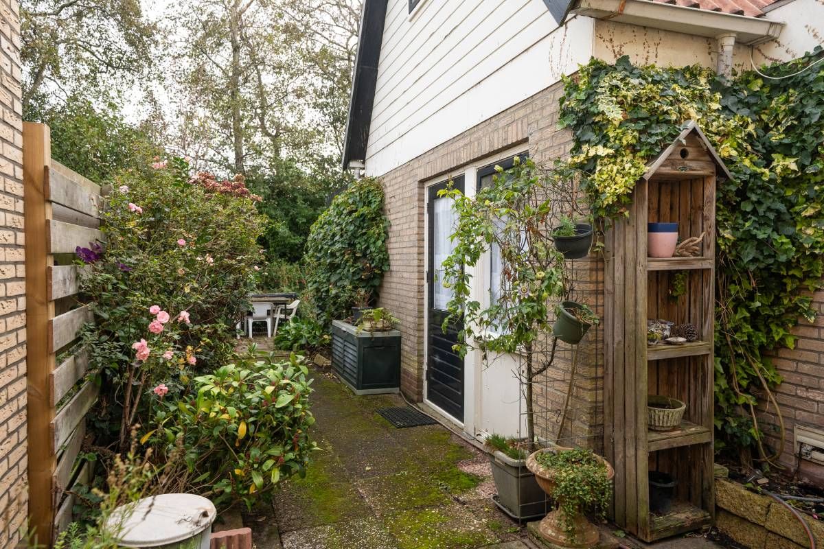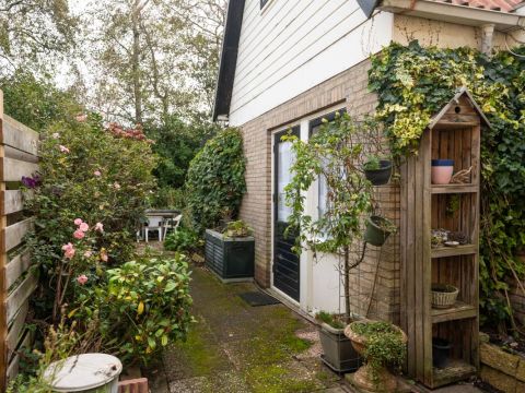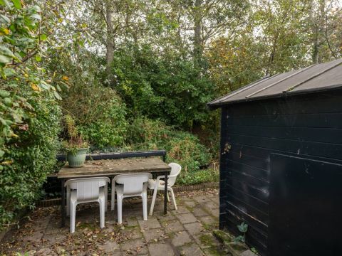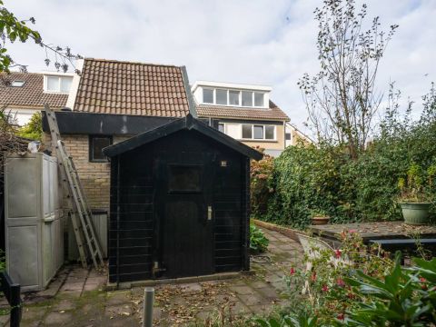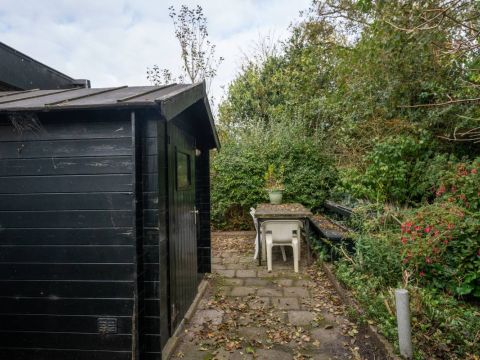 Verder treft u een houten tuinhuisje aan, perfect voor het opbergen van (tuin) gereedschap of een fiets.
