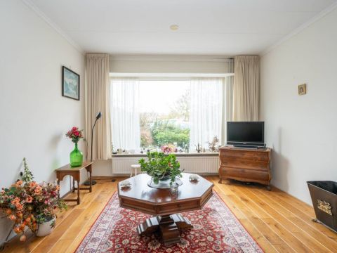 Indeling | U komt binnen in de hal waarna toegang tot de sfeervolle woonkamer. De woonkamer aan de voorzijde is heerlijk licht. Hier kunt u een gezellige zithoek creëren waar u in alle rust geniet van het uitzicht op de voortuin en de rustige straat. De mooie houten vloerdelen geven de woonkamer een warme uitstraling.