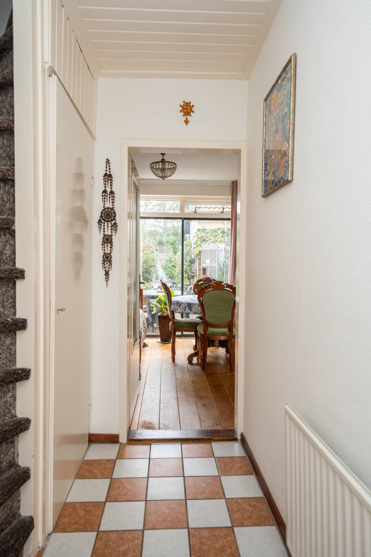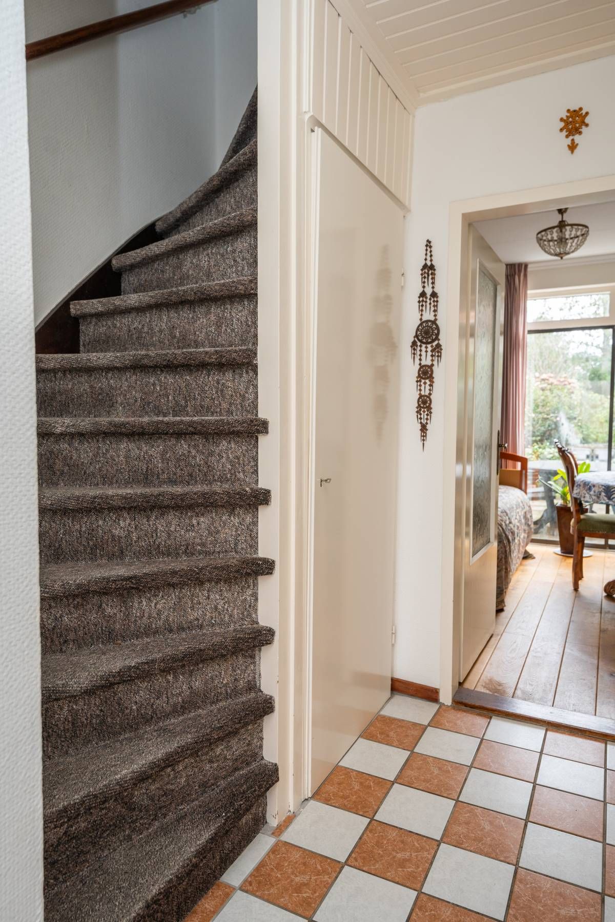 De hal beschikt over een garderobe, toilet, trapkast met meterkast, en de trapopgang naar de verdieping.