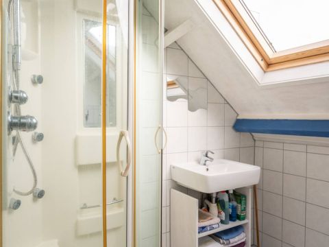De badkamer op deze verdieping is uitgerust met een douche, toilet en wastafel. Praktisch voor een groot gezin of logés.